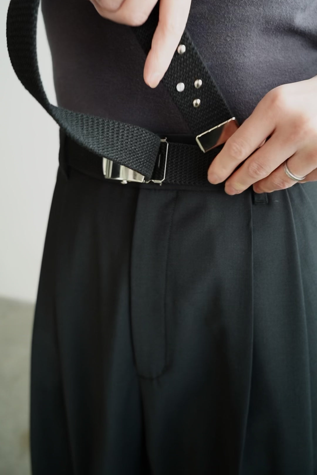 シンプルな装いにプラスするキャンバスベルトを製作しました。