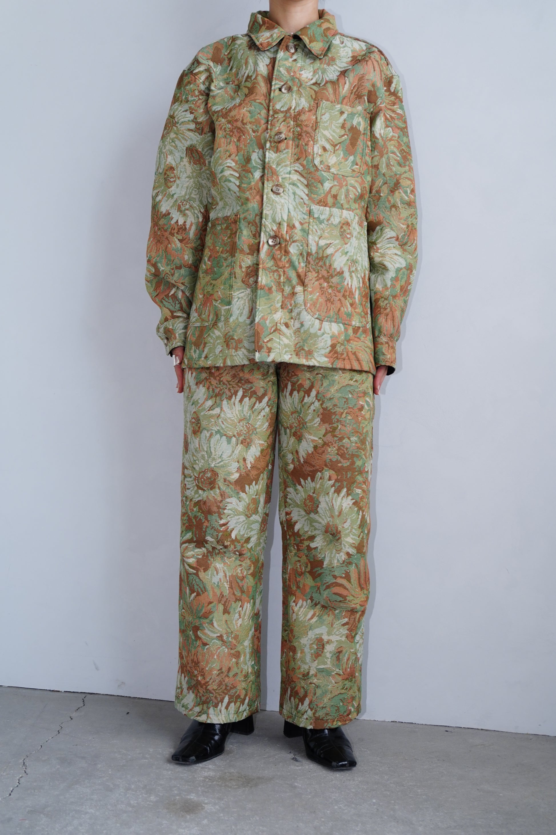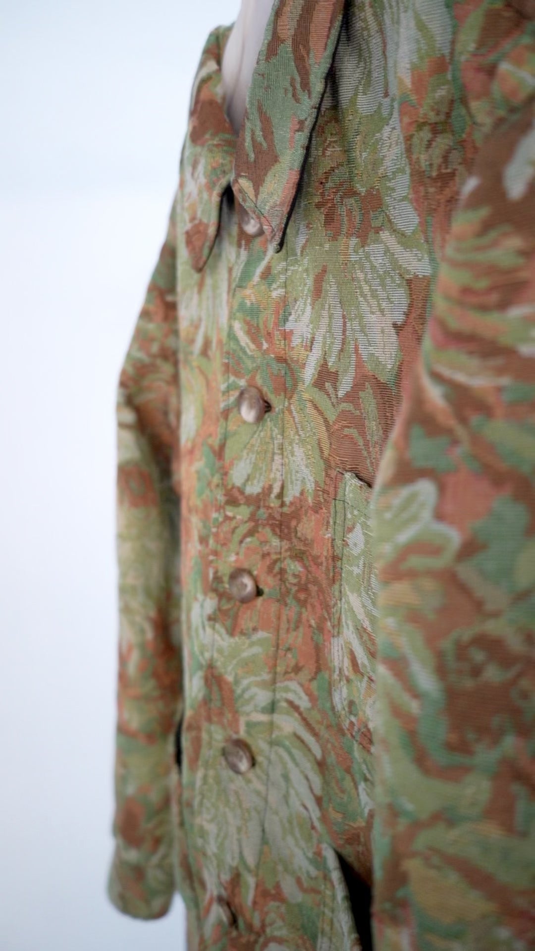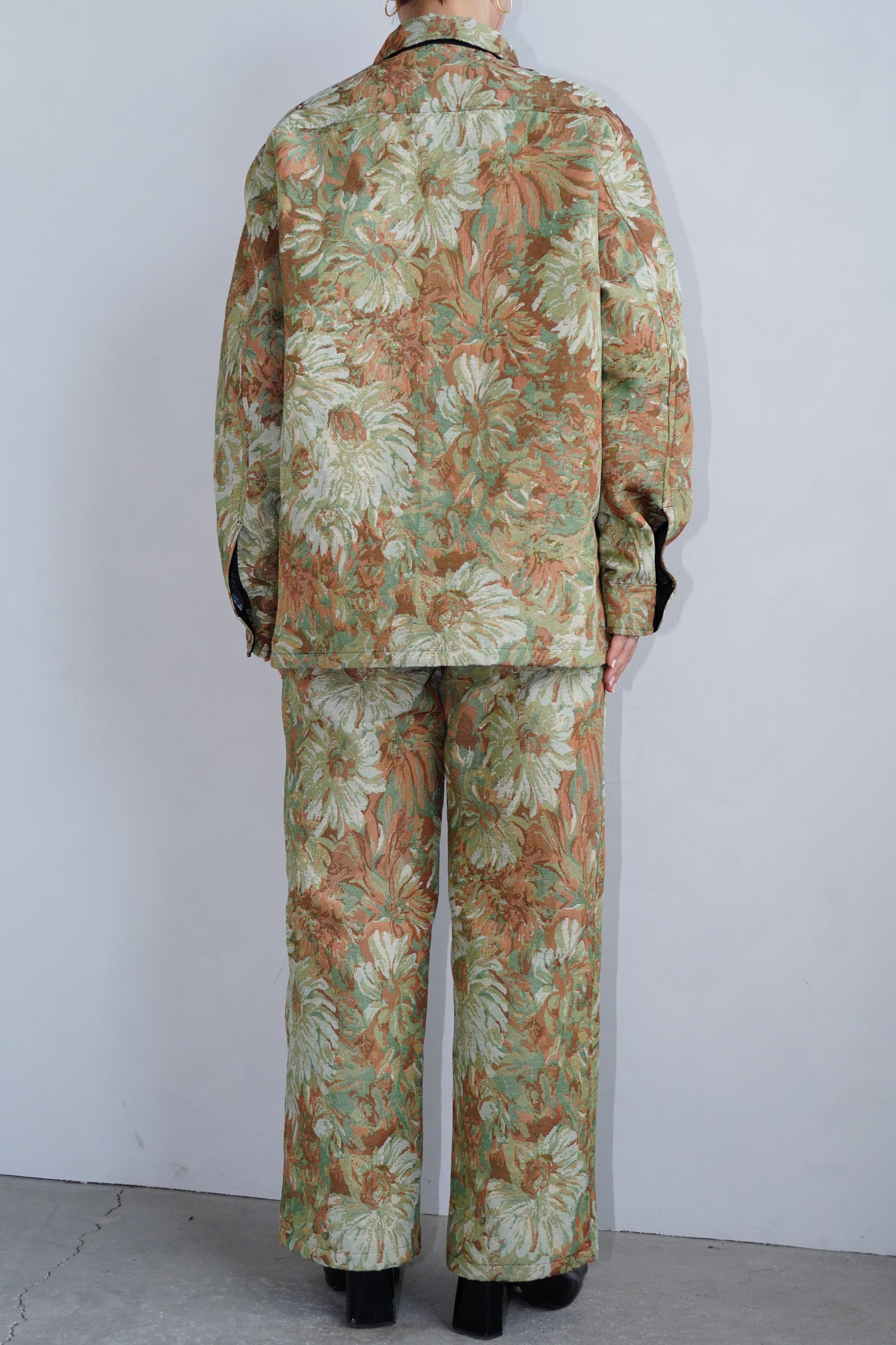 目を惹く花柄のジャカード素材を使用したジャケットです。
