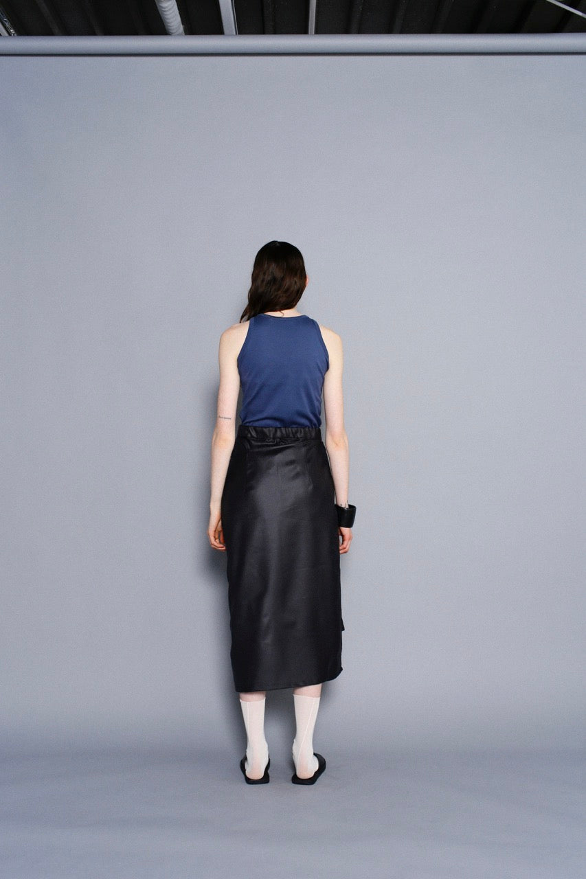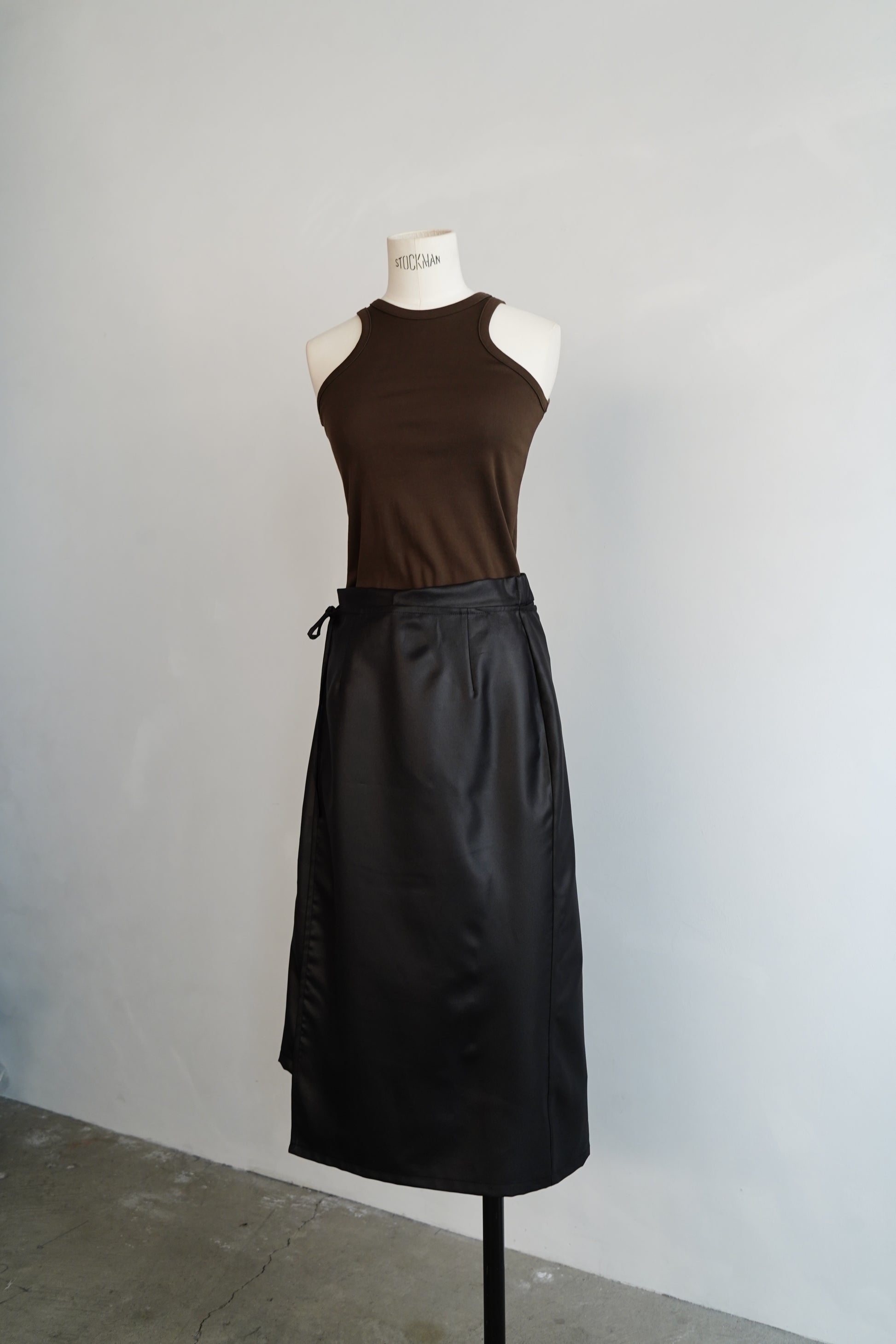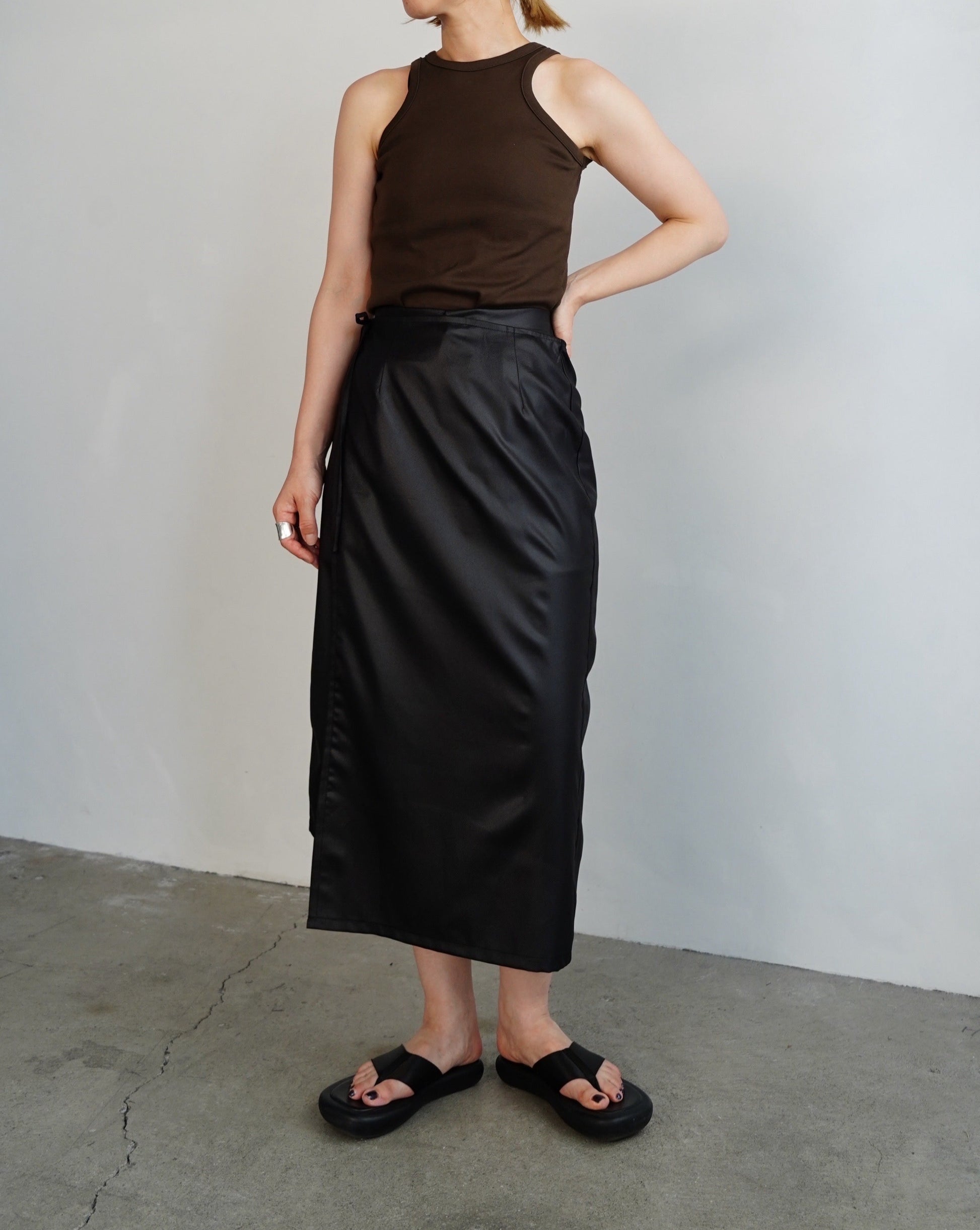 カジュアルに見えがちなミドル丈ですが、艶感があるため上品な印象で着られます。