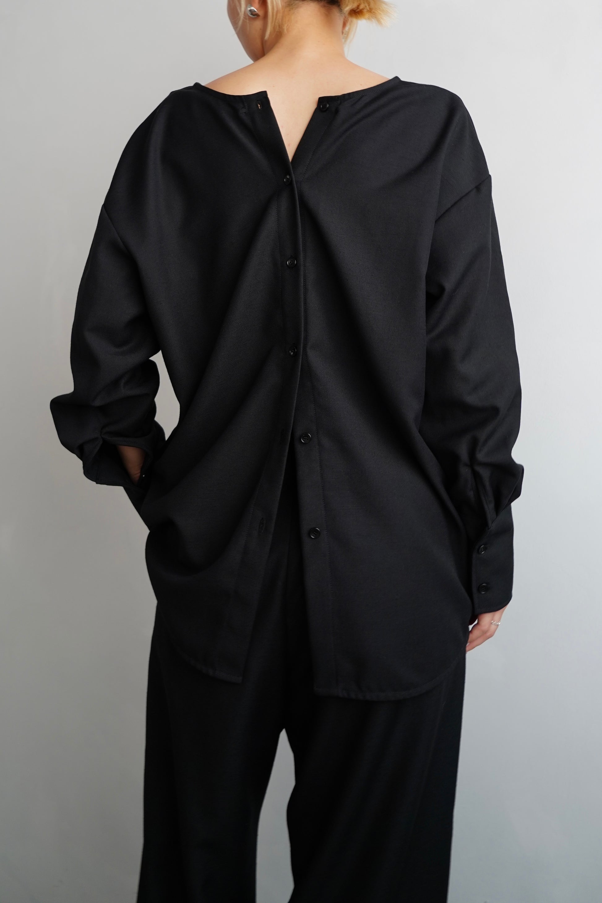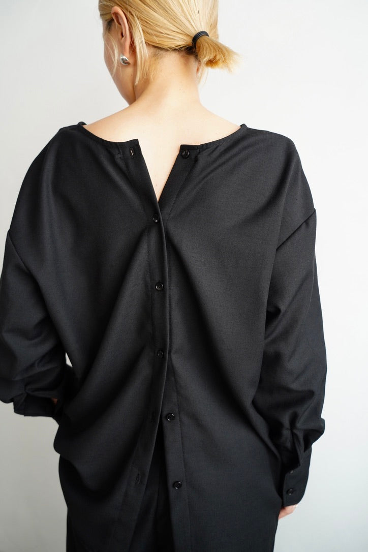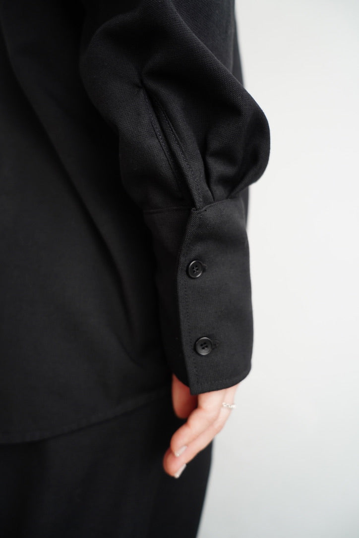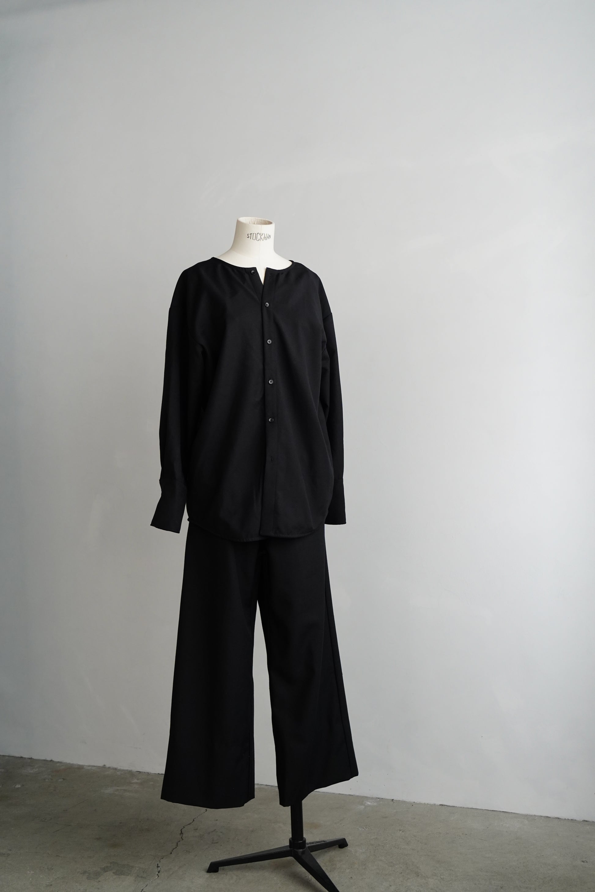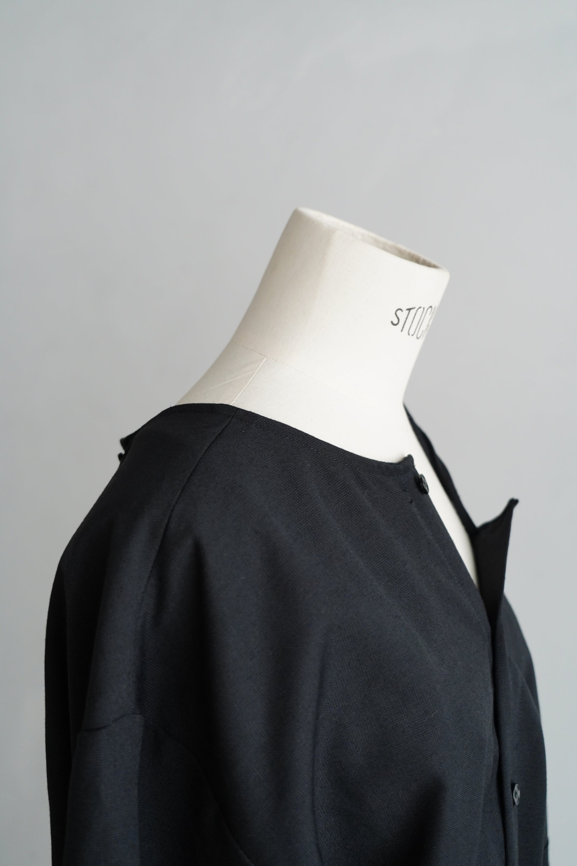 生地のさりげないネップ(糸のかたまり)が表情に奥行きを与え、グレーはネップがより目立ち、ブラックは落ち着いた印象です。