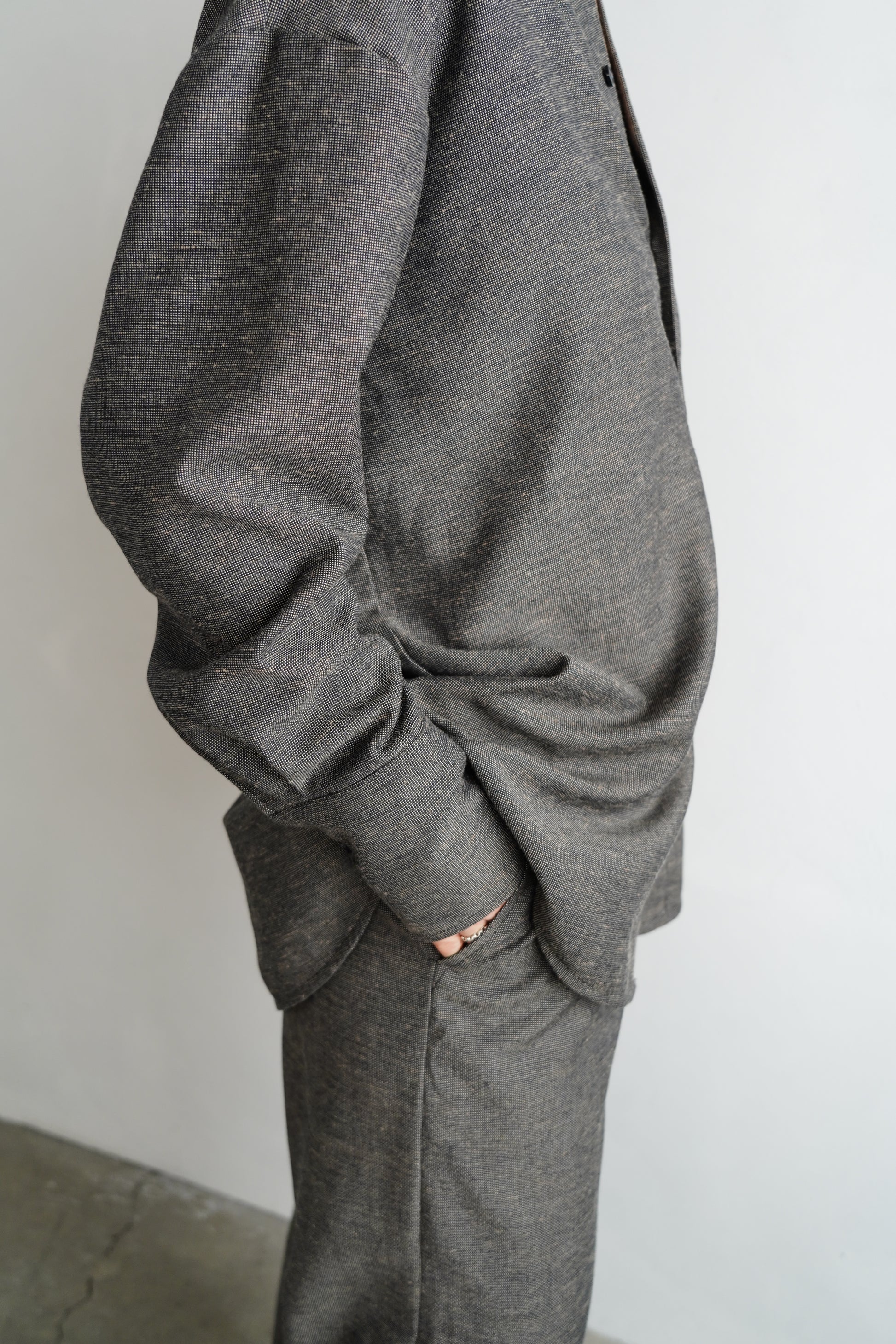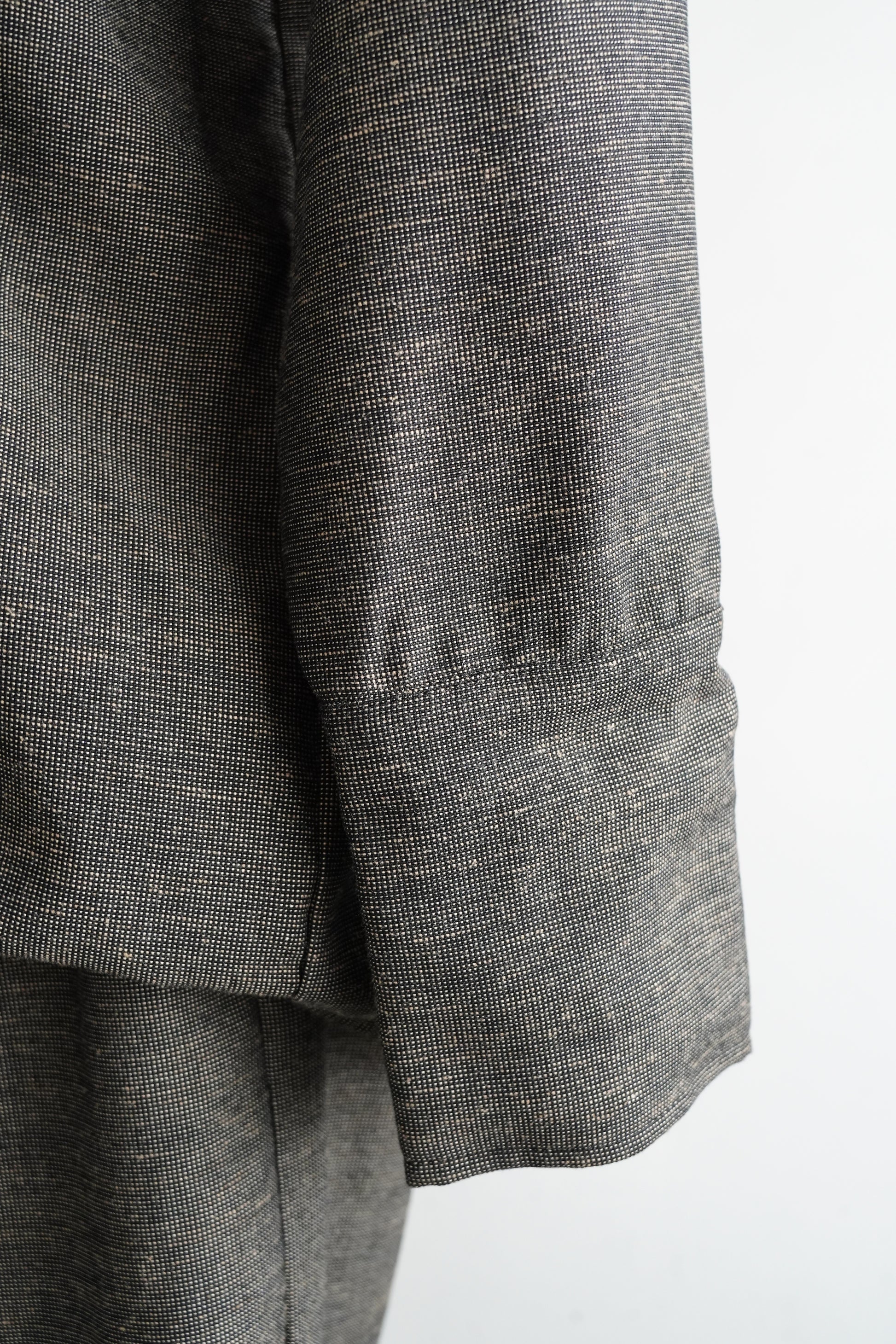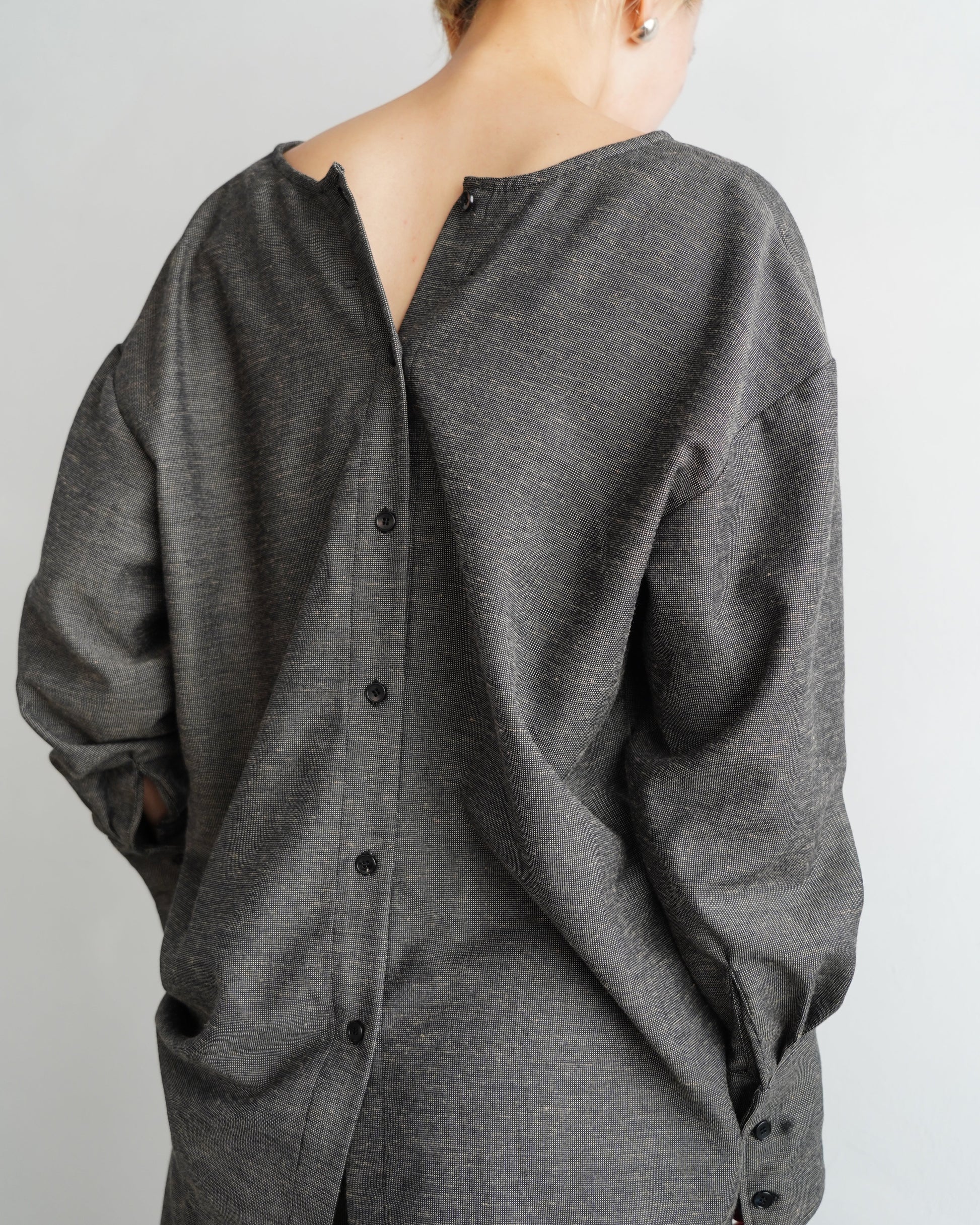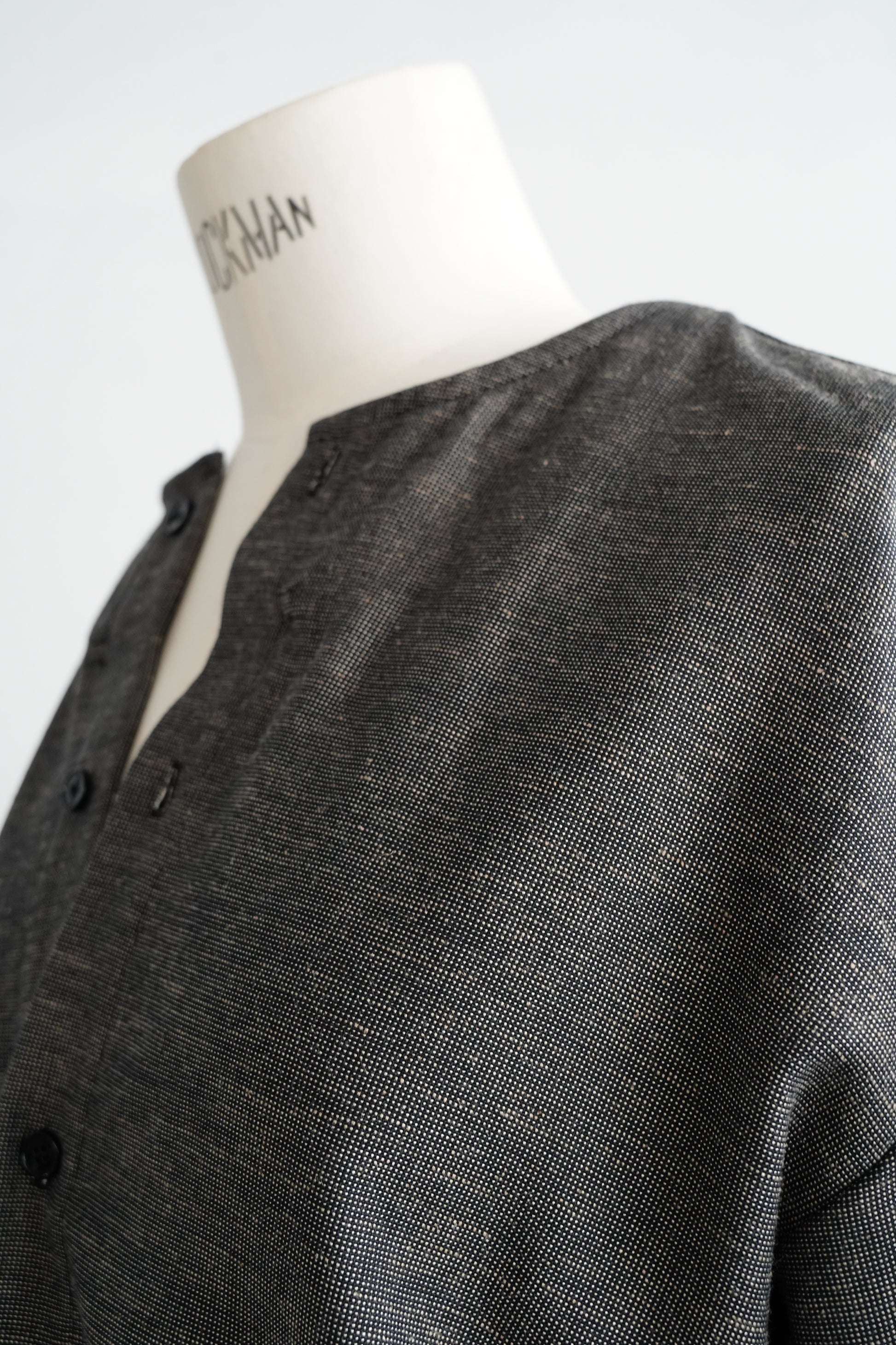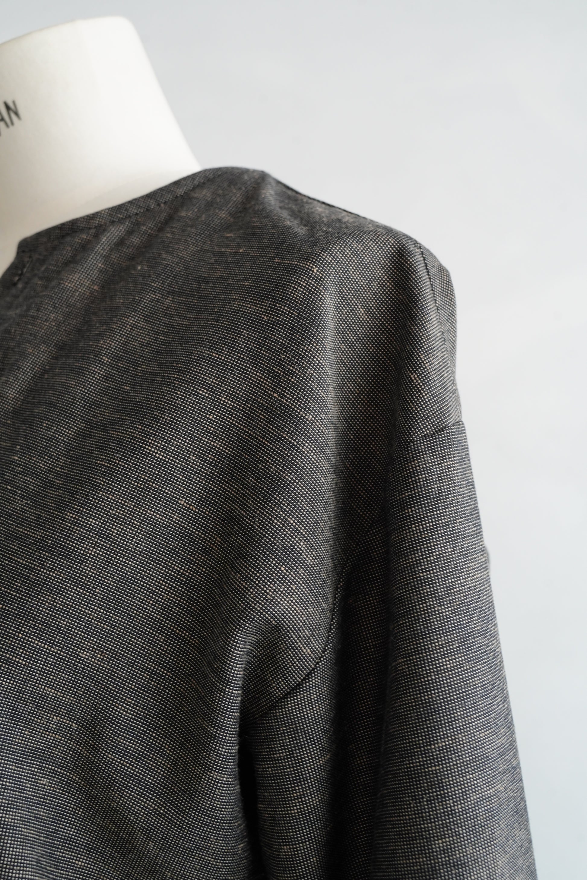 生地のさりげないネップ(糸のかたまり)が表情に奥行きを与え、グレーはネップがより目立ち、ブラックは落ち着いた印象です。