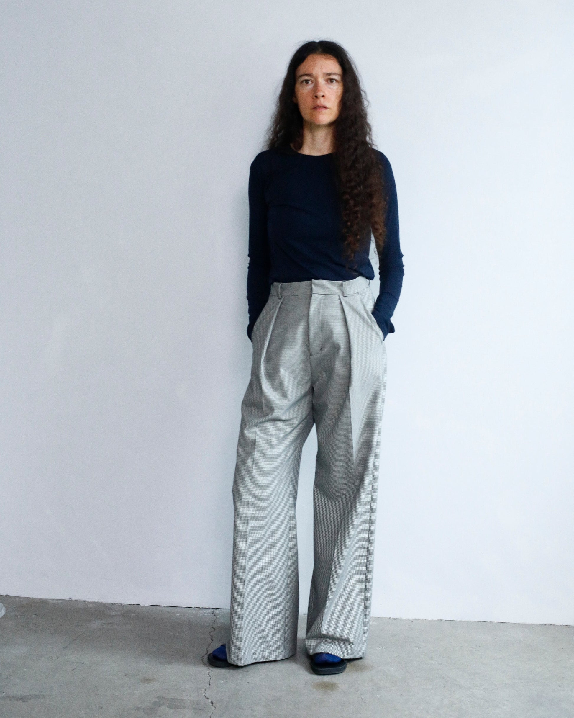 ウエストに1タックを入れることで、腰回りにゆとりを持たせつつもすっきりとしたシルエットを実現しました。