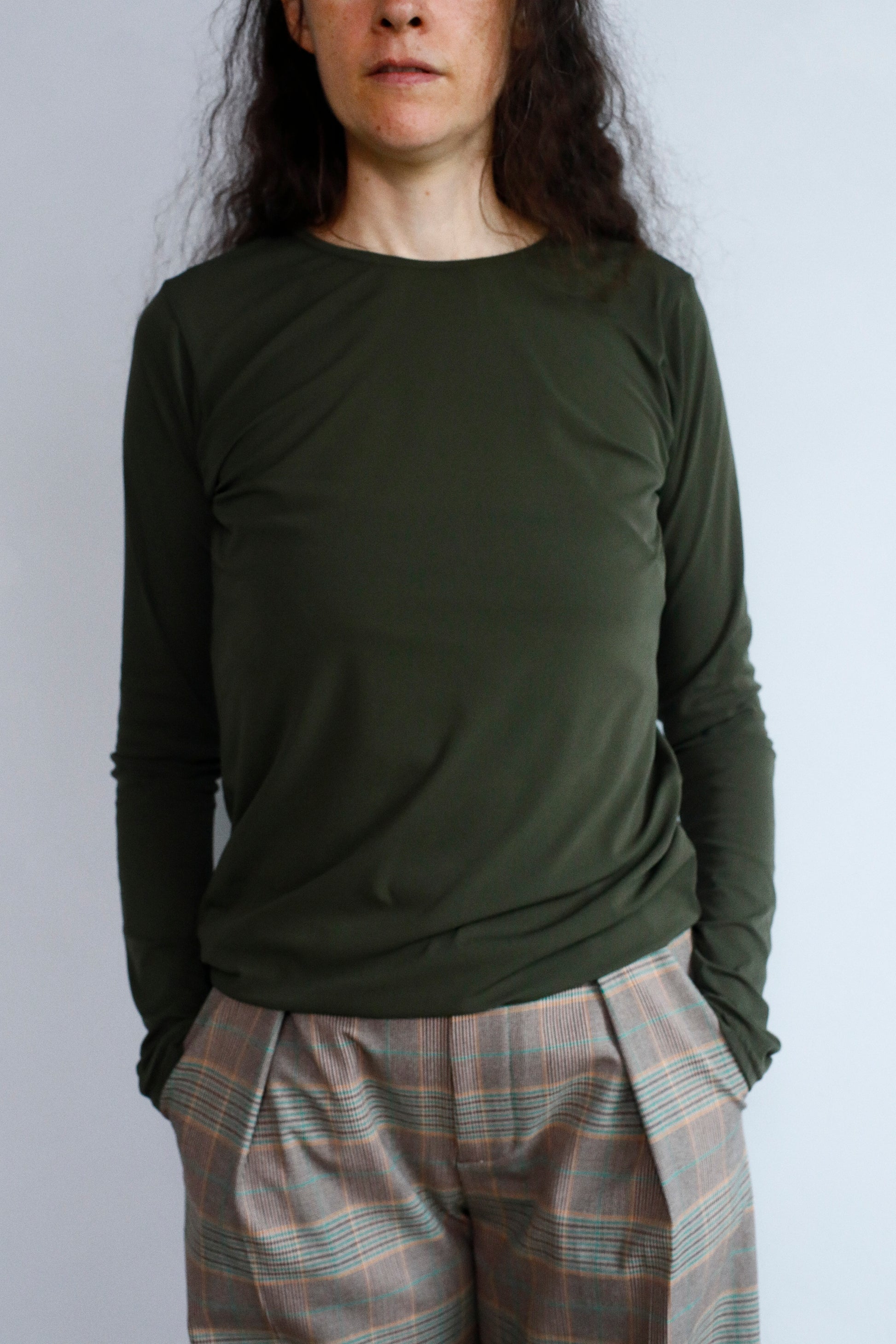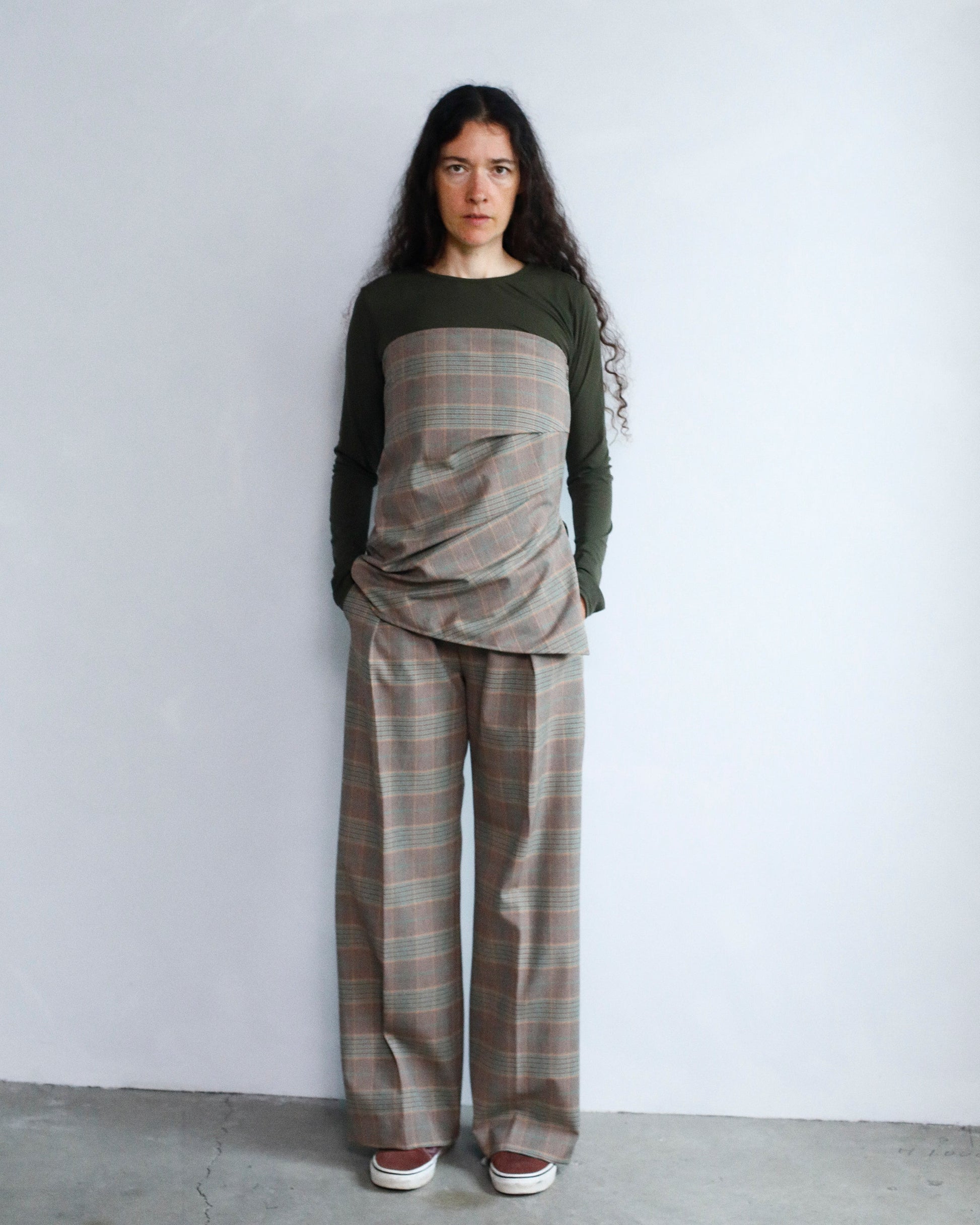 ウエストに1タックを入れることで、腰回りにゆとりを持たせつつもすっきりとしたシルエットを実現しました。