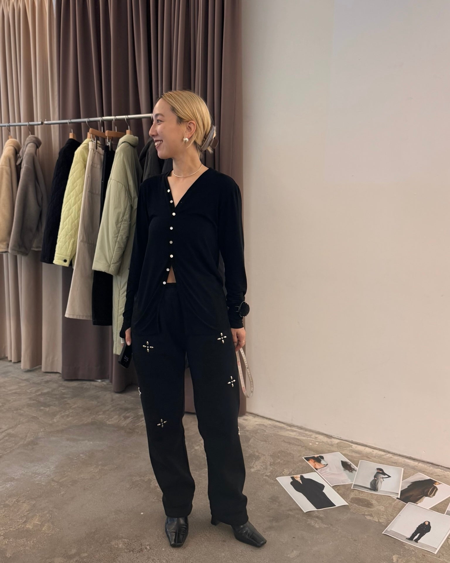 ボタンはラフに3つ留めたり、真ん中だけ留めたり、もちろん留めなくても。自由に合わせて楽しんでいただけたら嬉しいです。