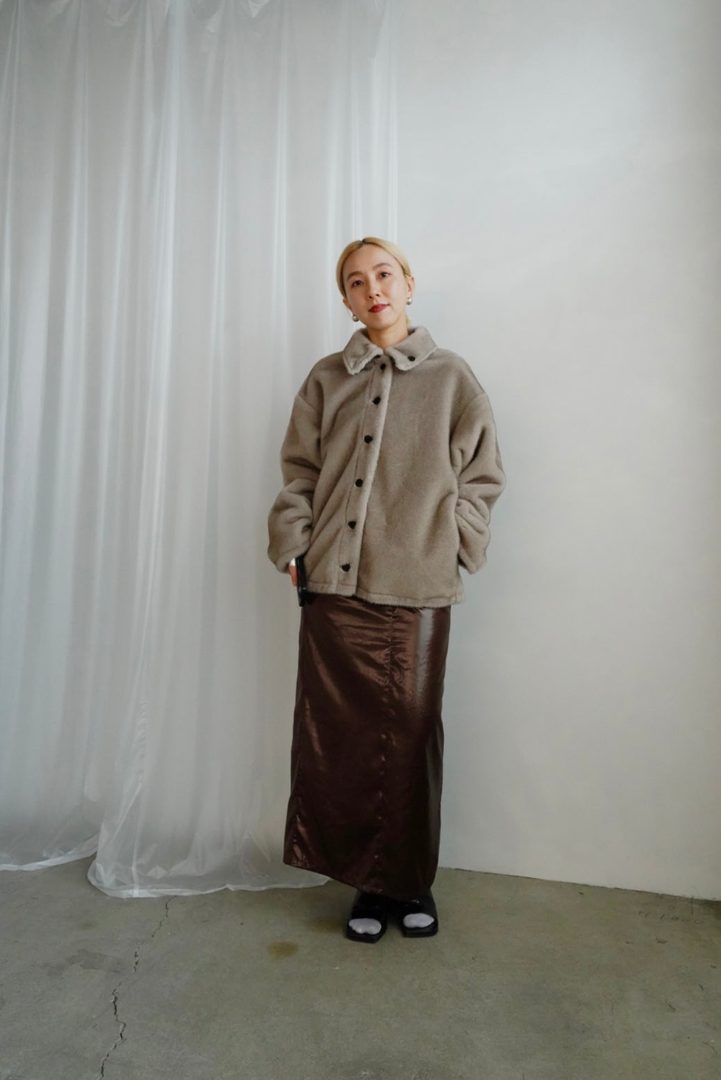 片面は艶やかなナイロン素材でスポーティかつ洗練された印象、もう片面はふんわりとしたエコファーで温もりのある柔らかな雰囲気です。