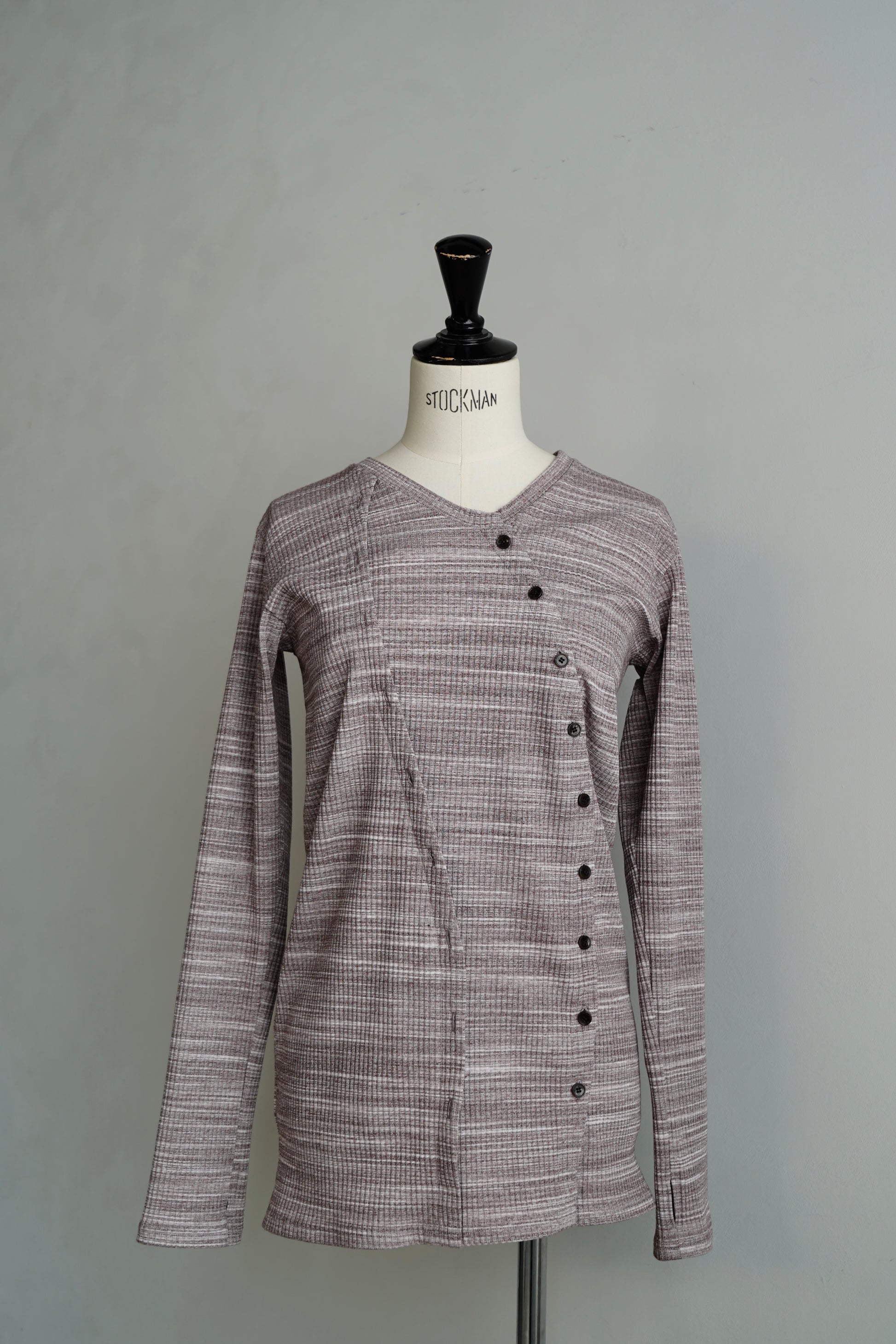 アシンメトリーなボタンデザインが目を引くカーディガンは、ボタンを斜めに配置しているので、開閉によってさまざまなシルエットを楽しめます。