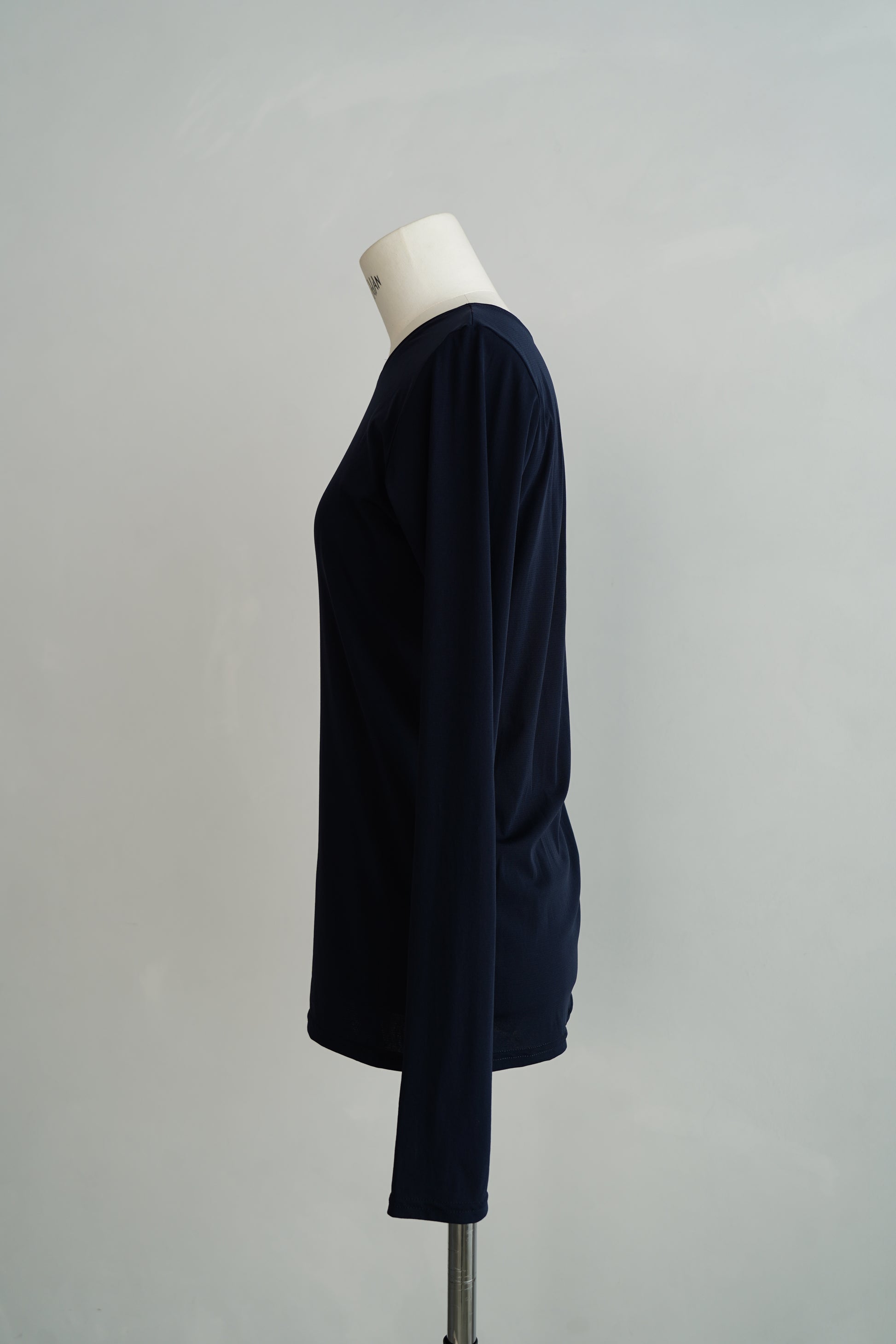 ほんのりと透け感がありながら、「透けすぎない」絶妙なバランスで仕上げているため、1枚でもインナーとしても安心して着られます。