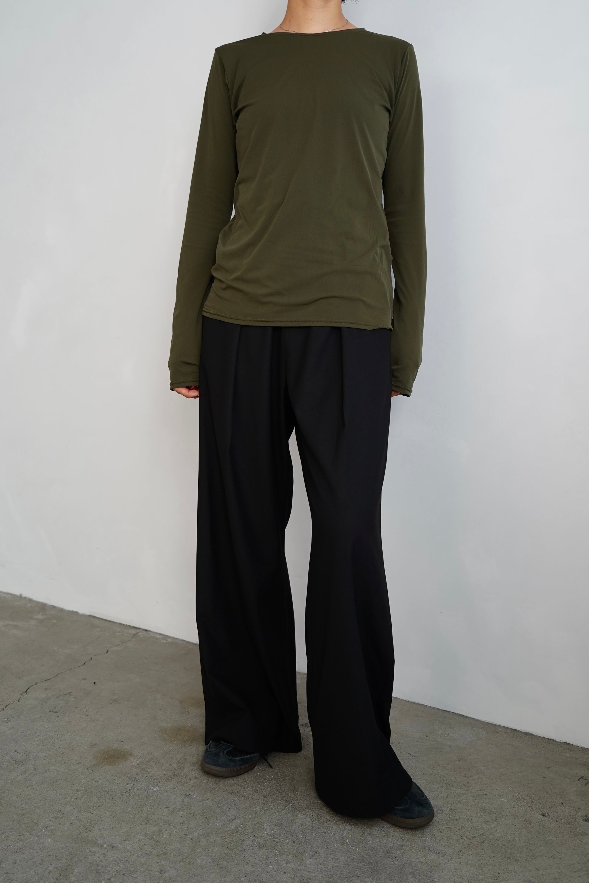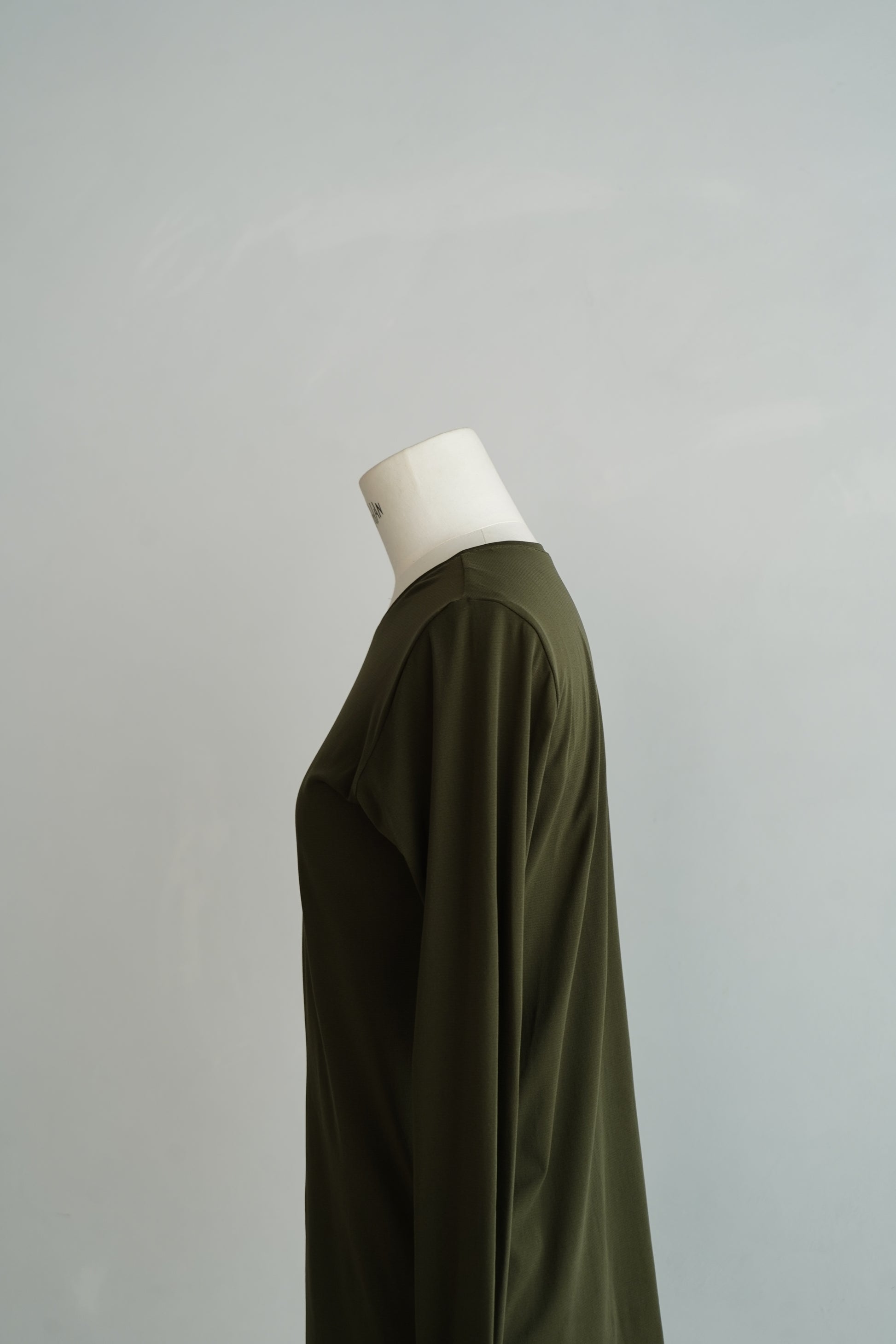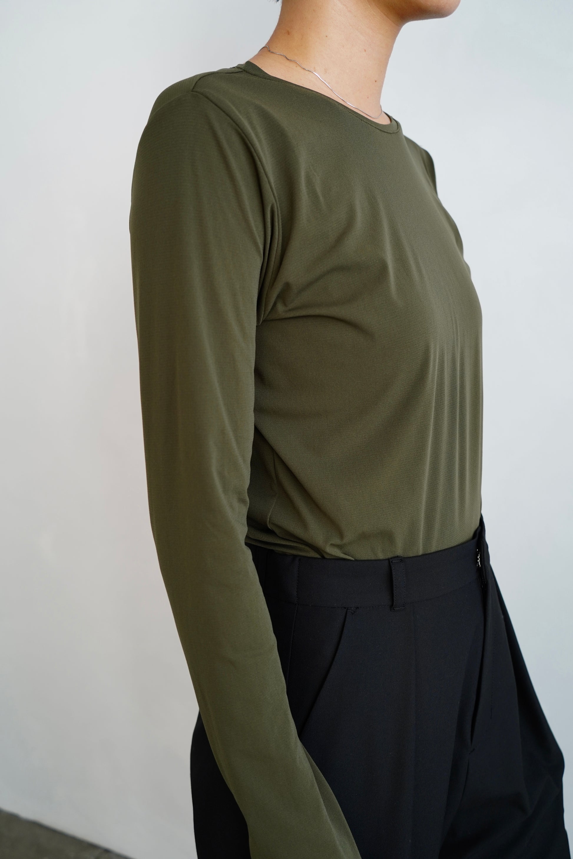 季節の変わり目にも活躍するロングスリーブは、ニットやスウェットのインナーとしてレイヤードしてももたつかず、すっきりとした印象です。