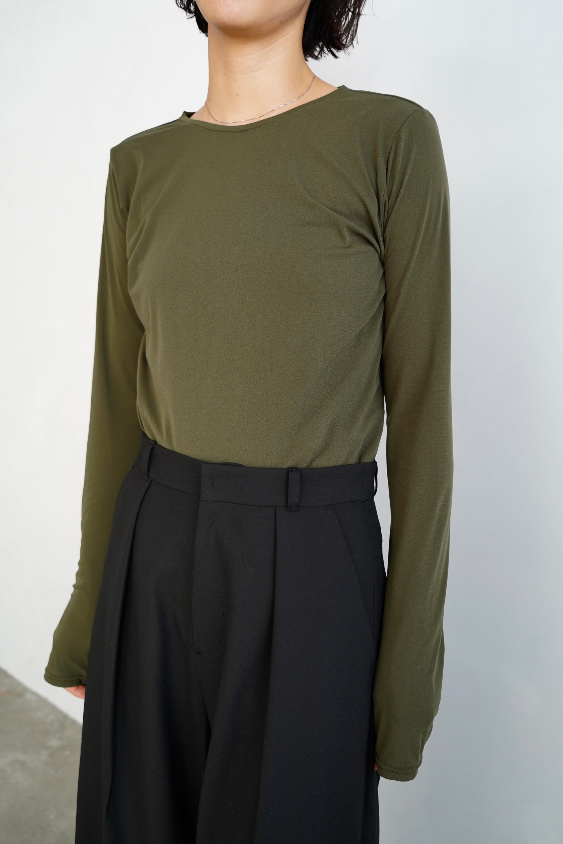 ほんのりと透け感がありながら、「透けすぎない」絶妙なバランスで仕上げているため、1枚でもインナーとしても安心して着られます。