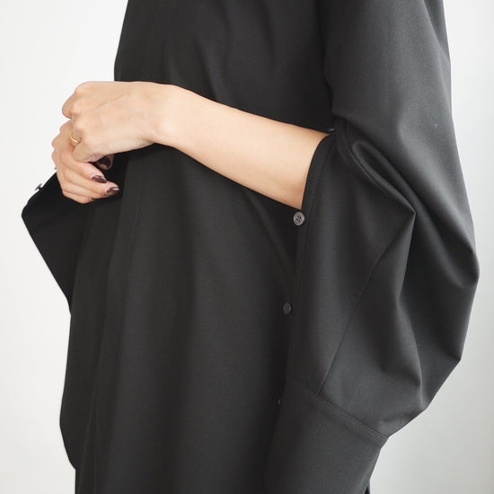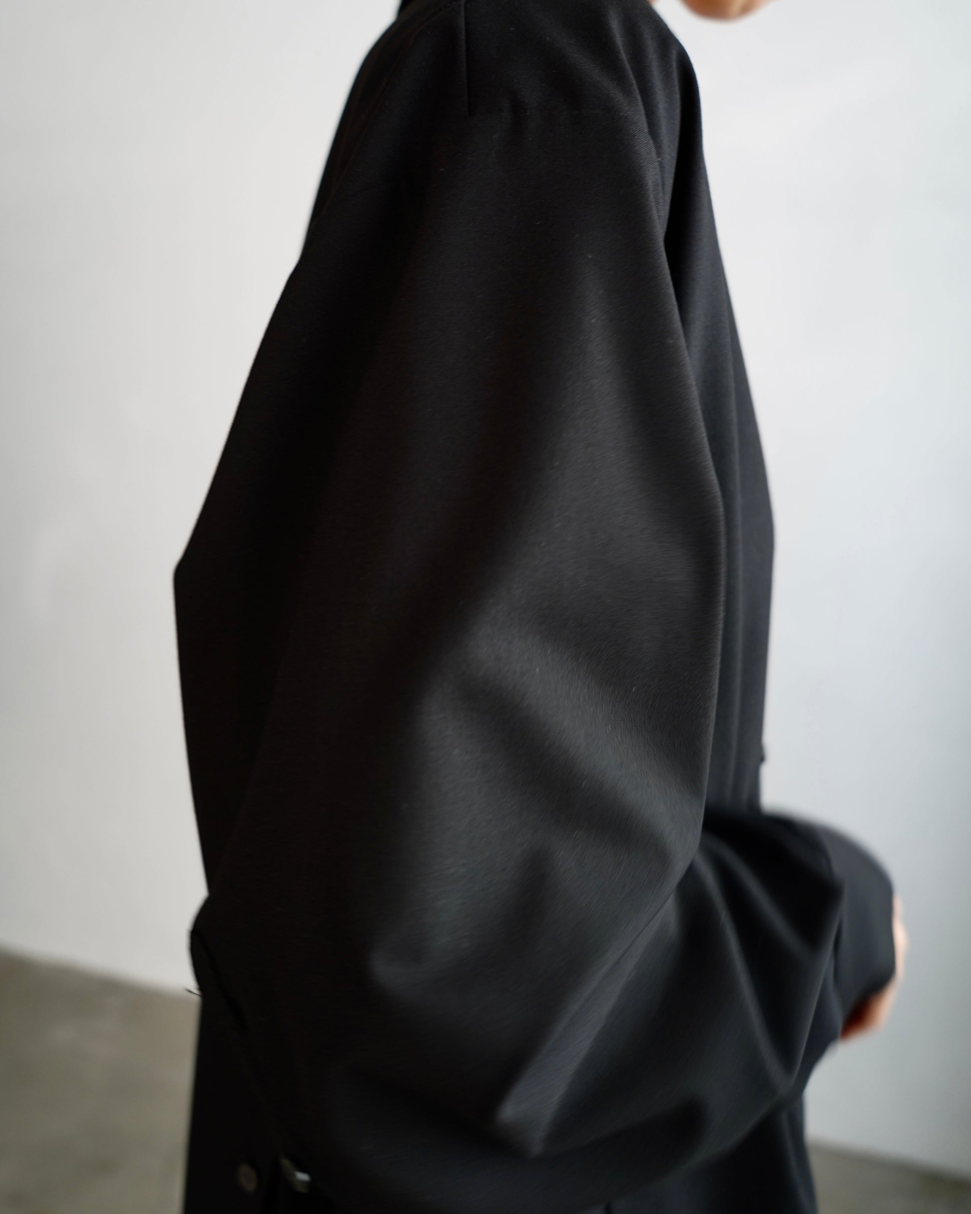 ややオーバーサイジングで襟を抜いて着ても、サイドのボタンでウエストを調整してシルエットを変えて着用もできます。