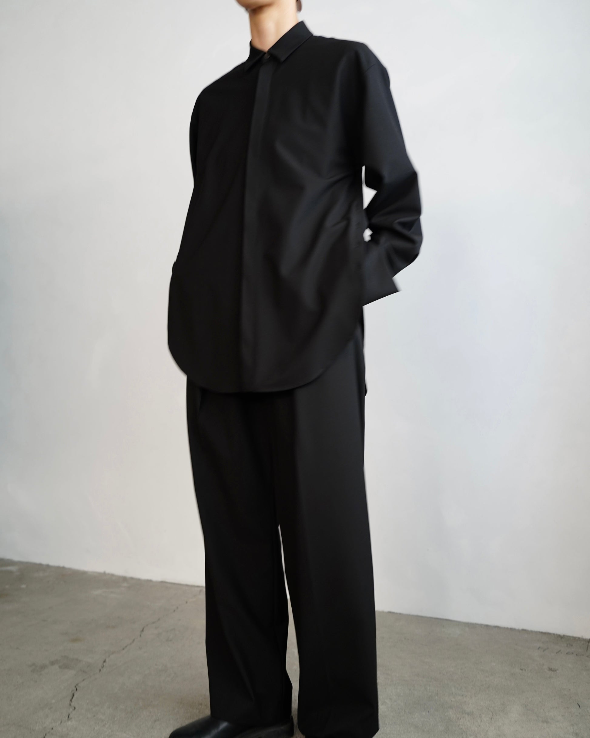 リラックスした着心地だけれど、〈Wide Straight Pants〉とセットアップで着るとピリッとした印象に仕上がるアイテムです。![]()