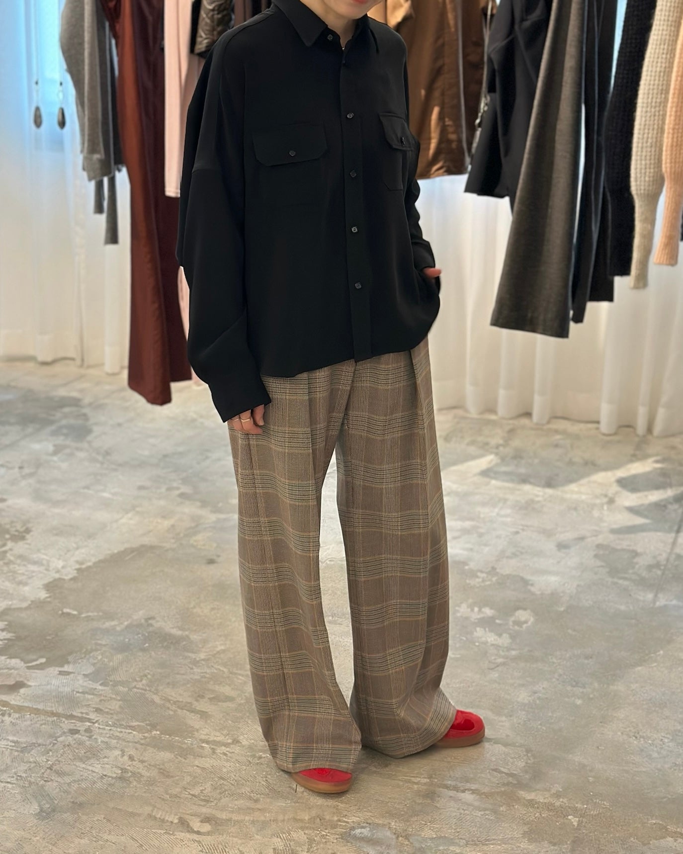 ゆったりとしたシルエットでリラックス感があり、タックイン・アウトどちらの着こなしも楽しめます。