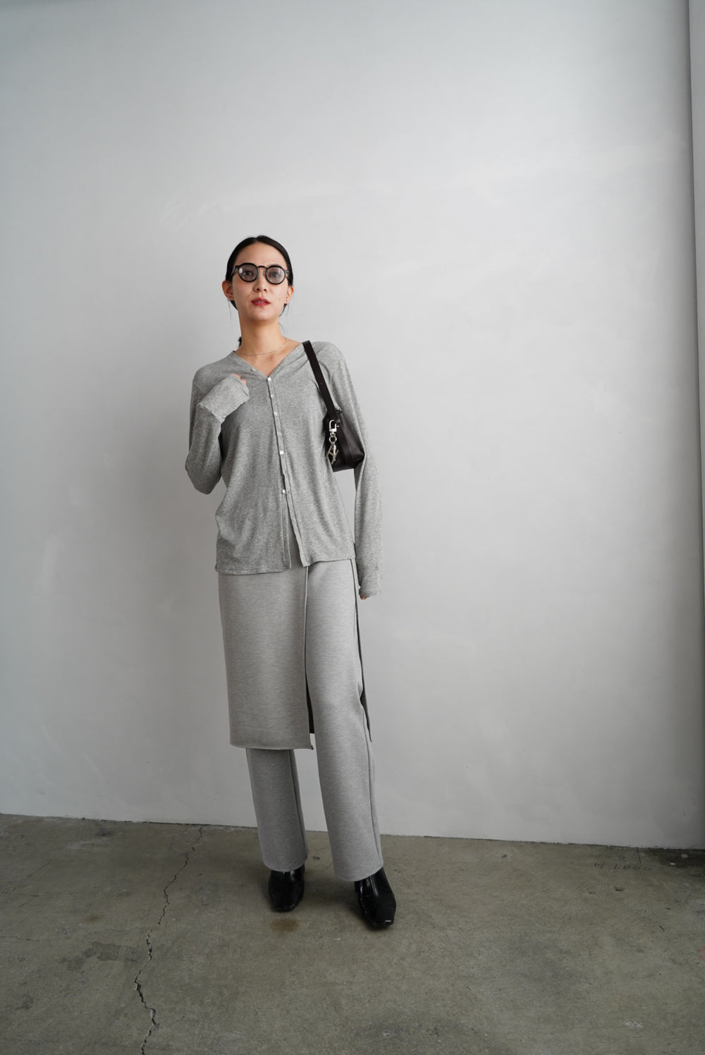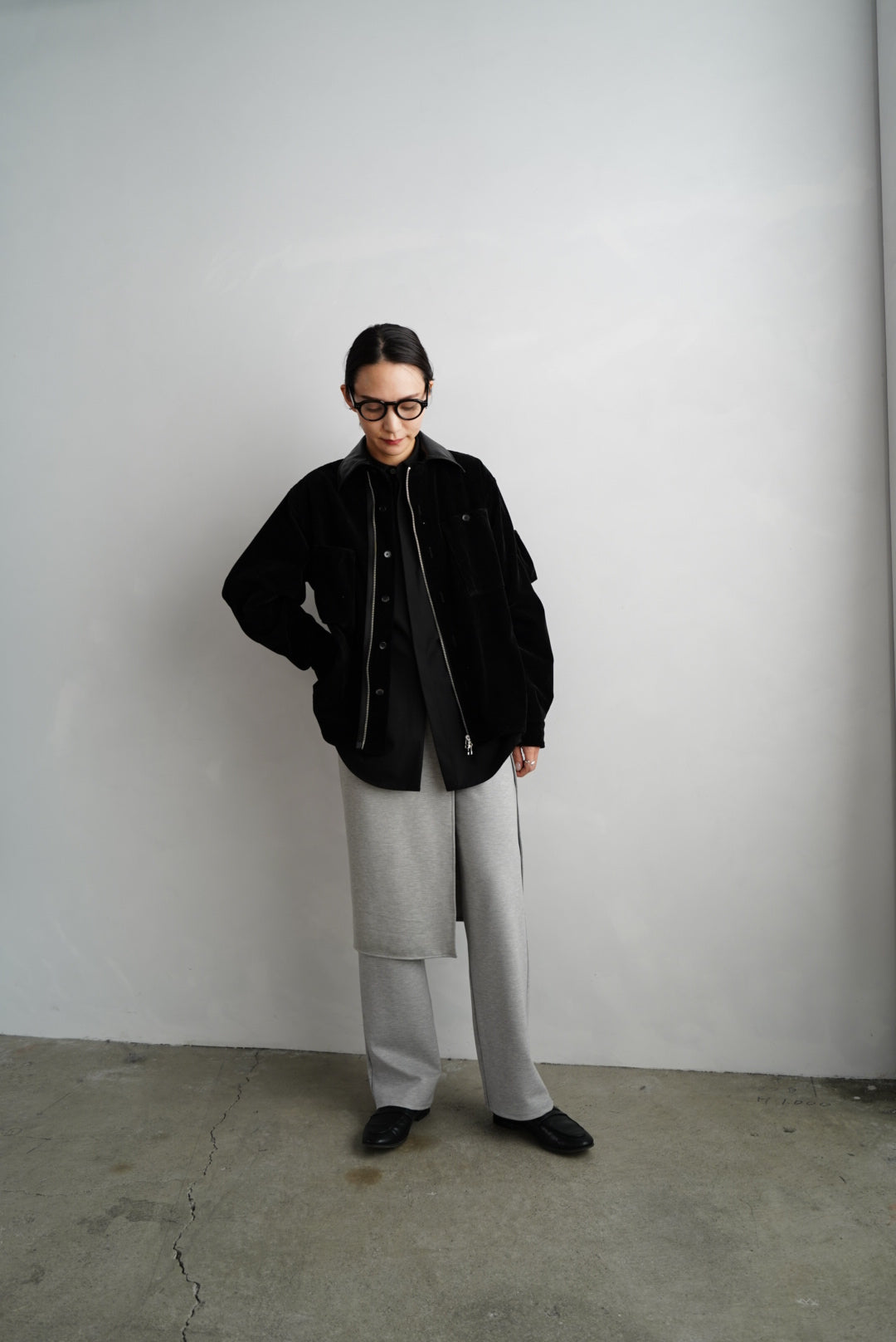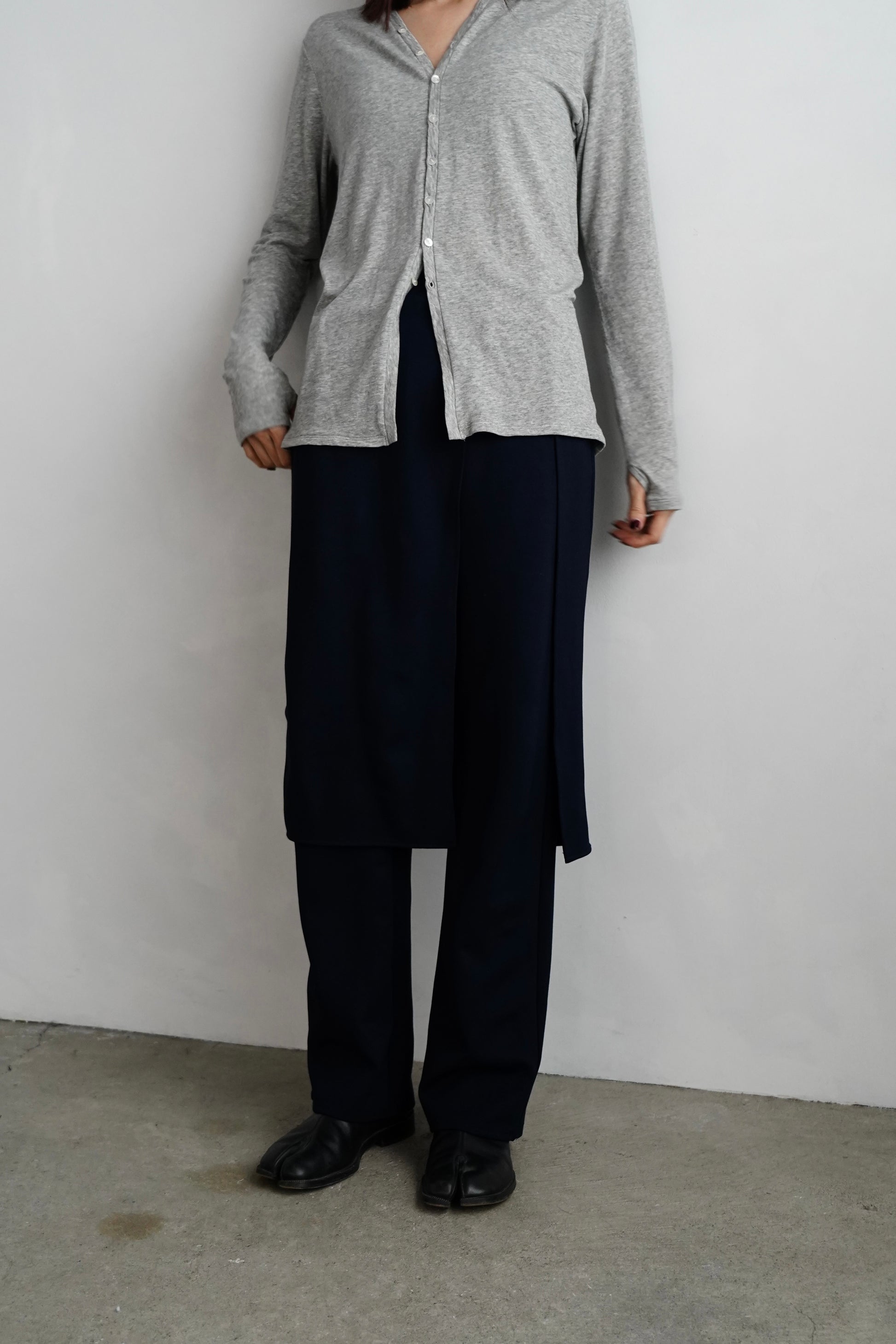 一見モードな佇まいでありながら、 素材には柔らかく伸びのある生地を使用し、軽やかでストレスのない履き心地に仕上げました。