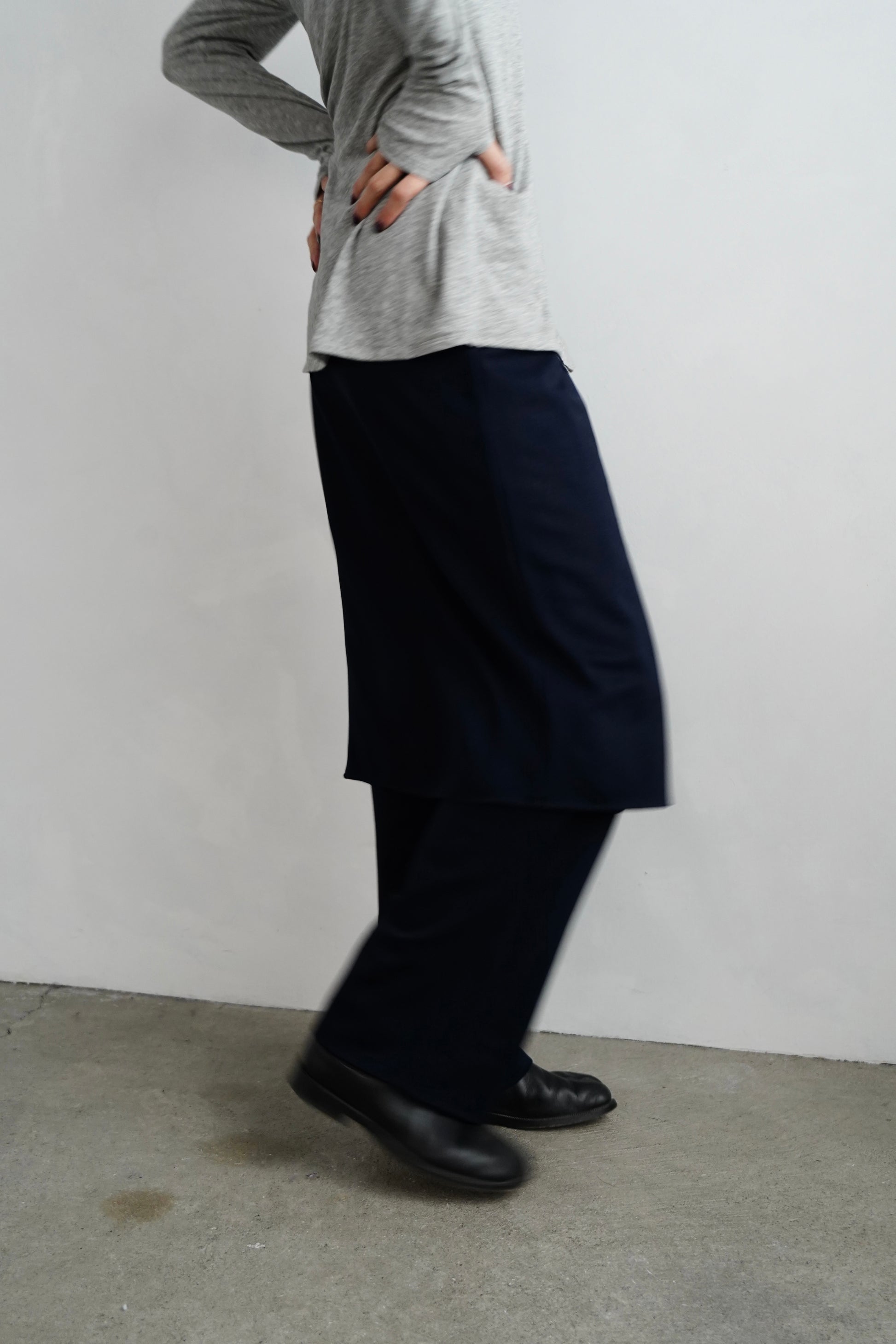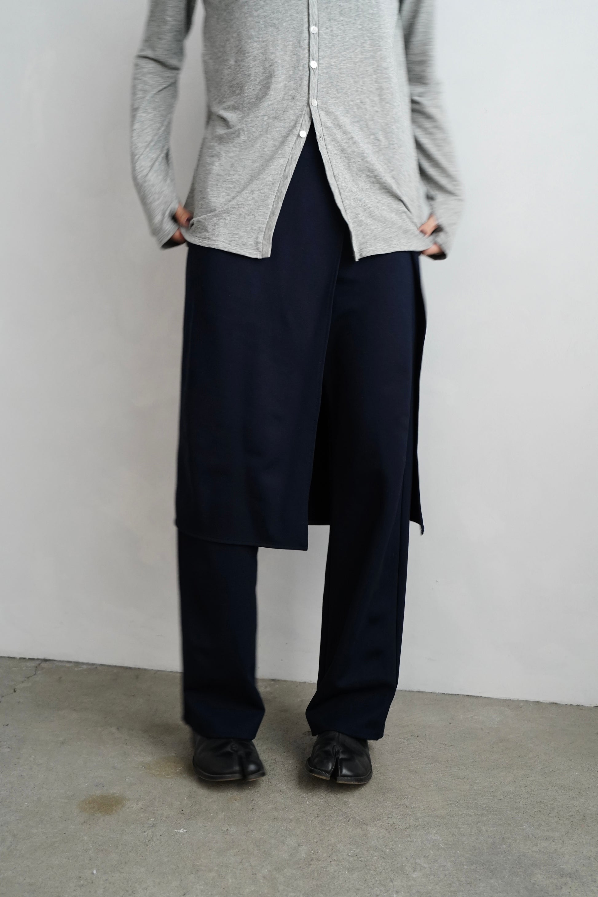 パンツにスカートを重ねた、レイヤードデザインが印象的な〈Soft Layer Pants〉