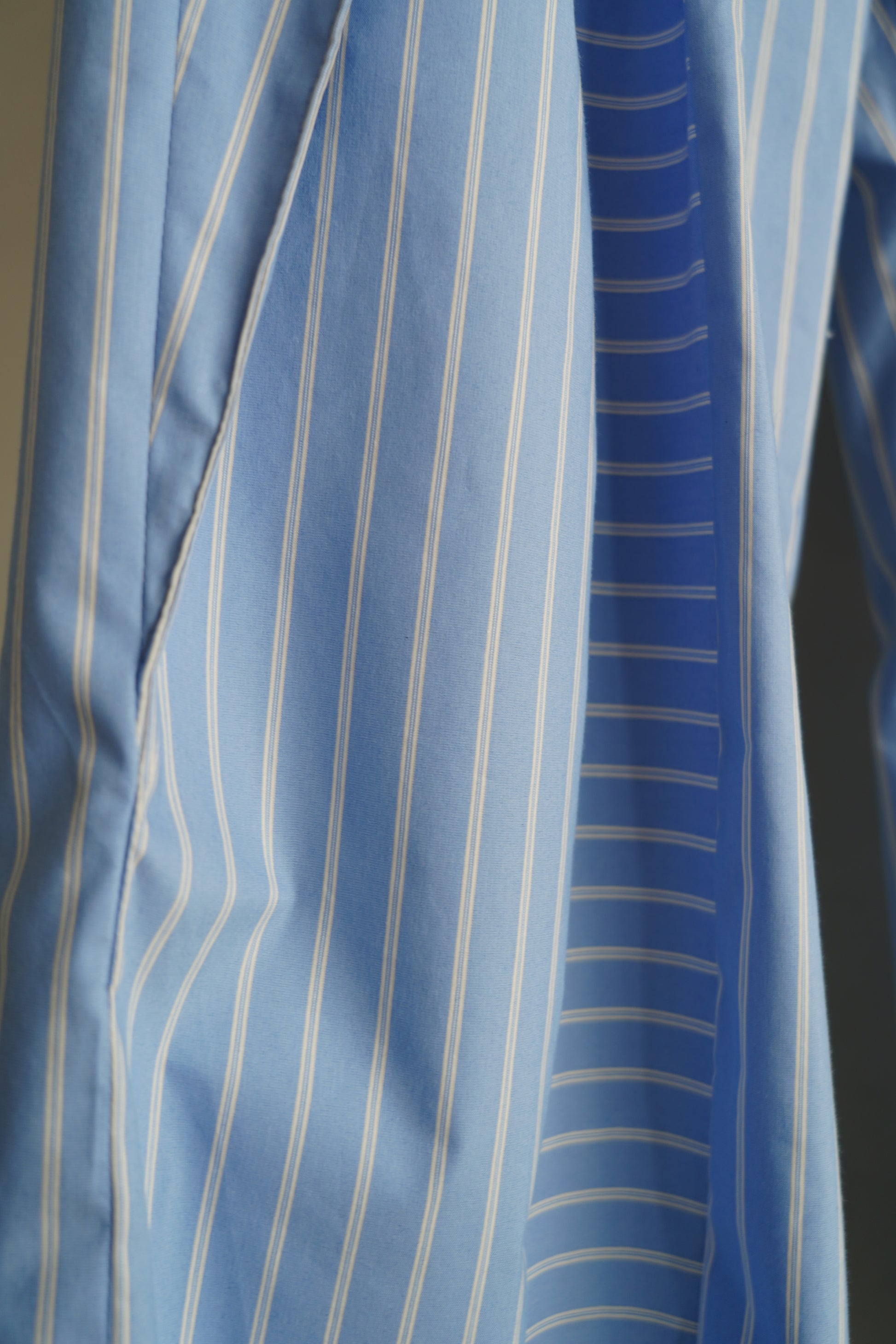 ハリのある布帛を使用し、上品な雰囲気が漂うストライプパンツ。夏にも着やすい涼しさです。
