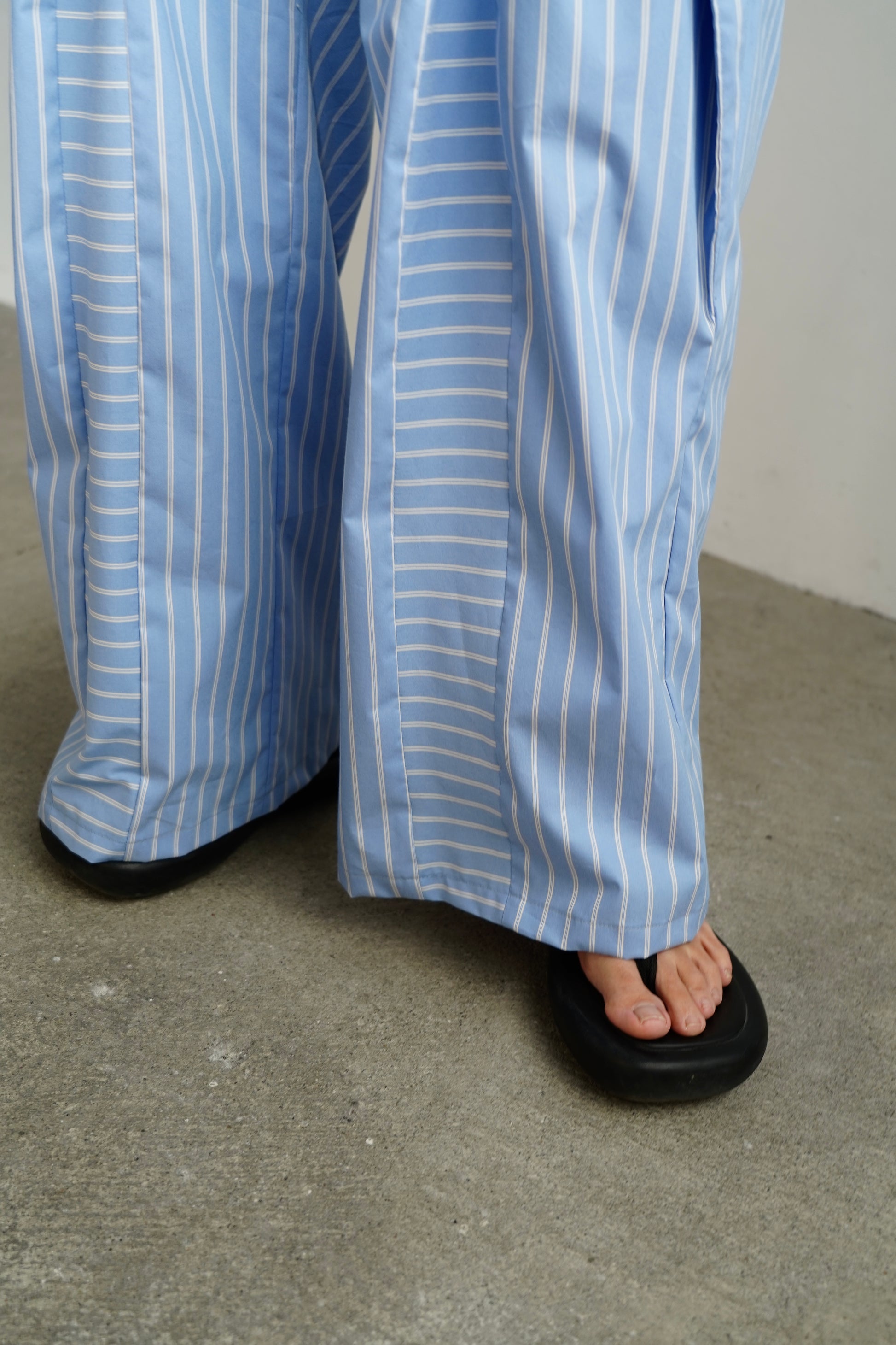 シーズンムードのある爽やかなストライプ生地を使用したワイドパンツです。