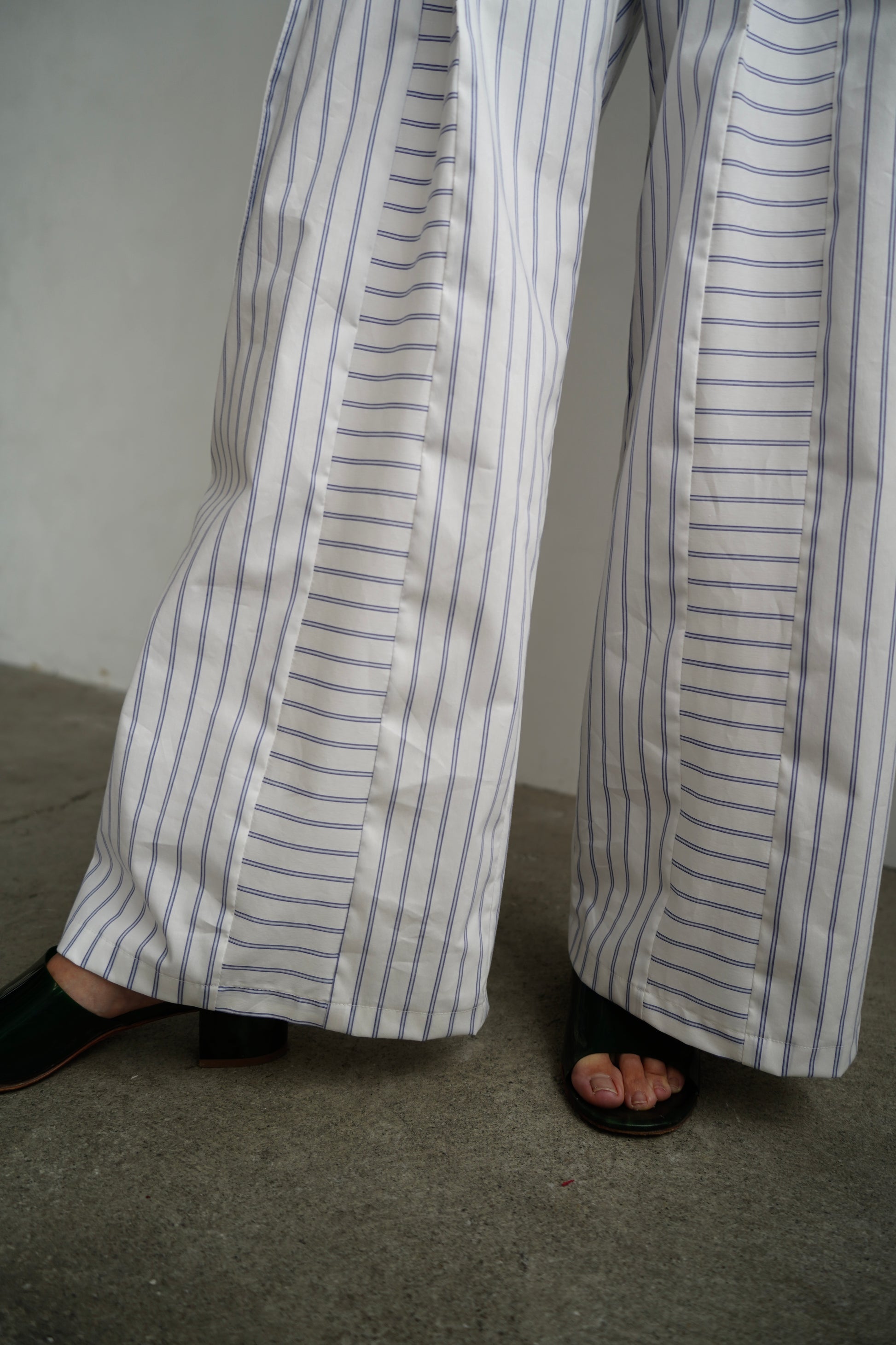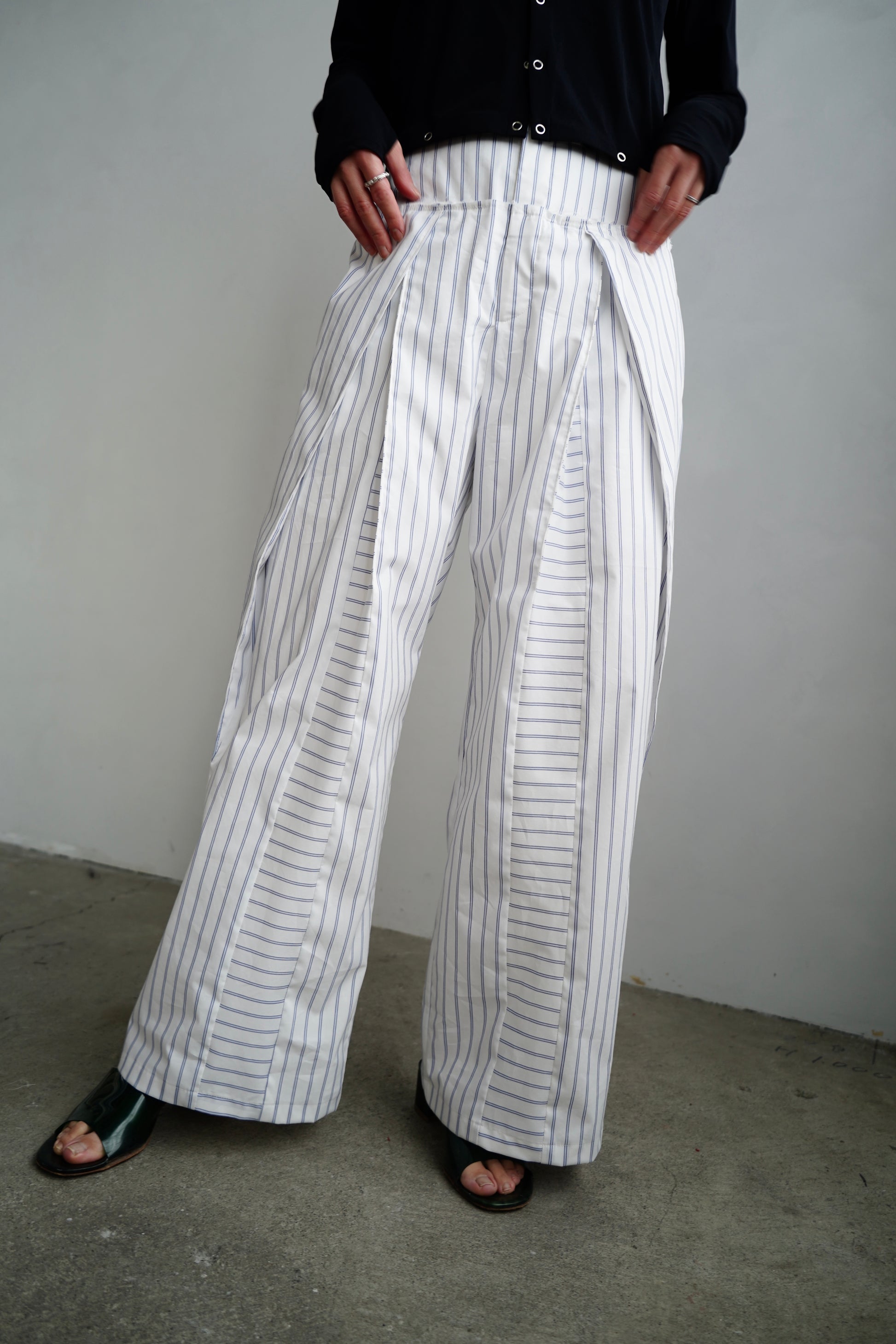 シーズンムードのある爽やかなストライプ生地を使用したワイドパンツです。