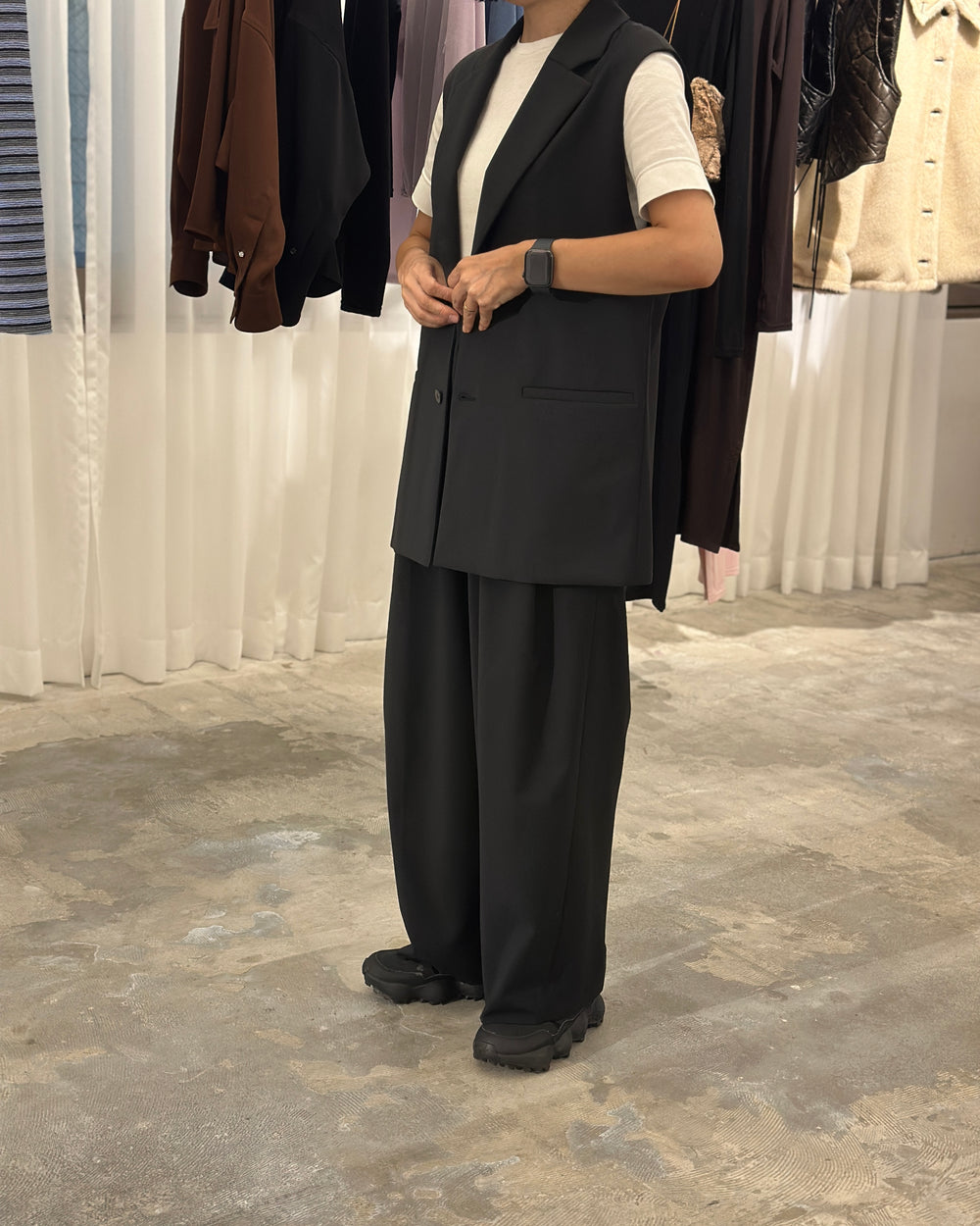 ロンTやシャツに重ねるだけでモードな雰囲気に仕上がり、パンツやスカート、ワンピースとのレイヤードもおすすめです。