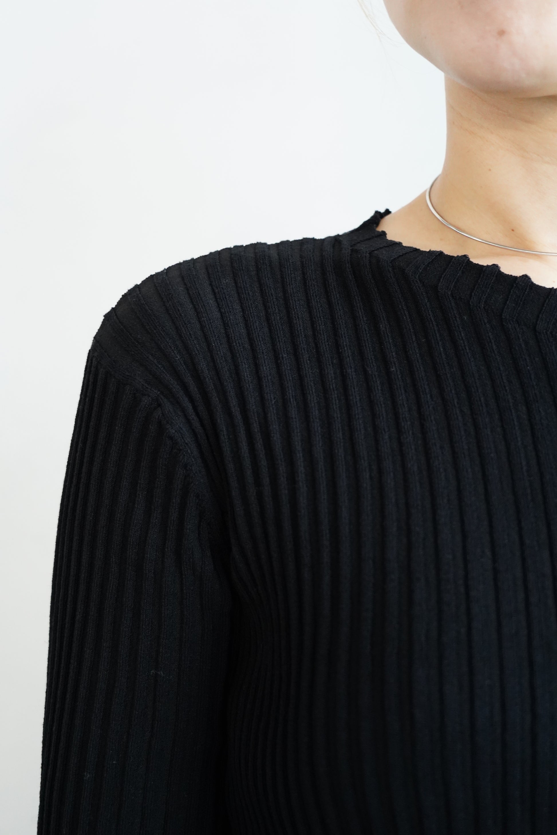 左右でリブのピッチを変えたデザインが特徴のリブニットカーディガンをつくりました。
