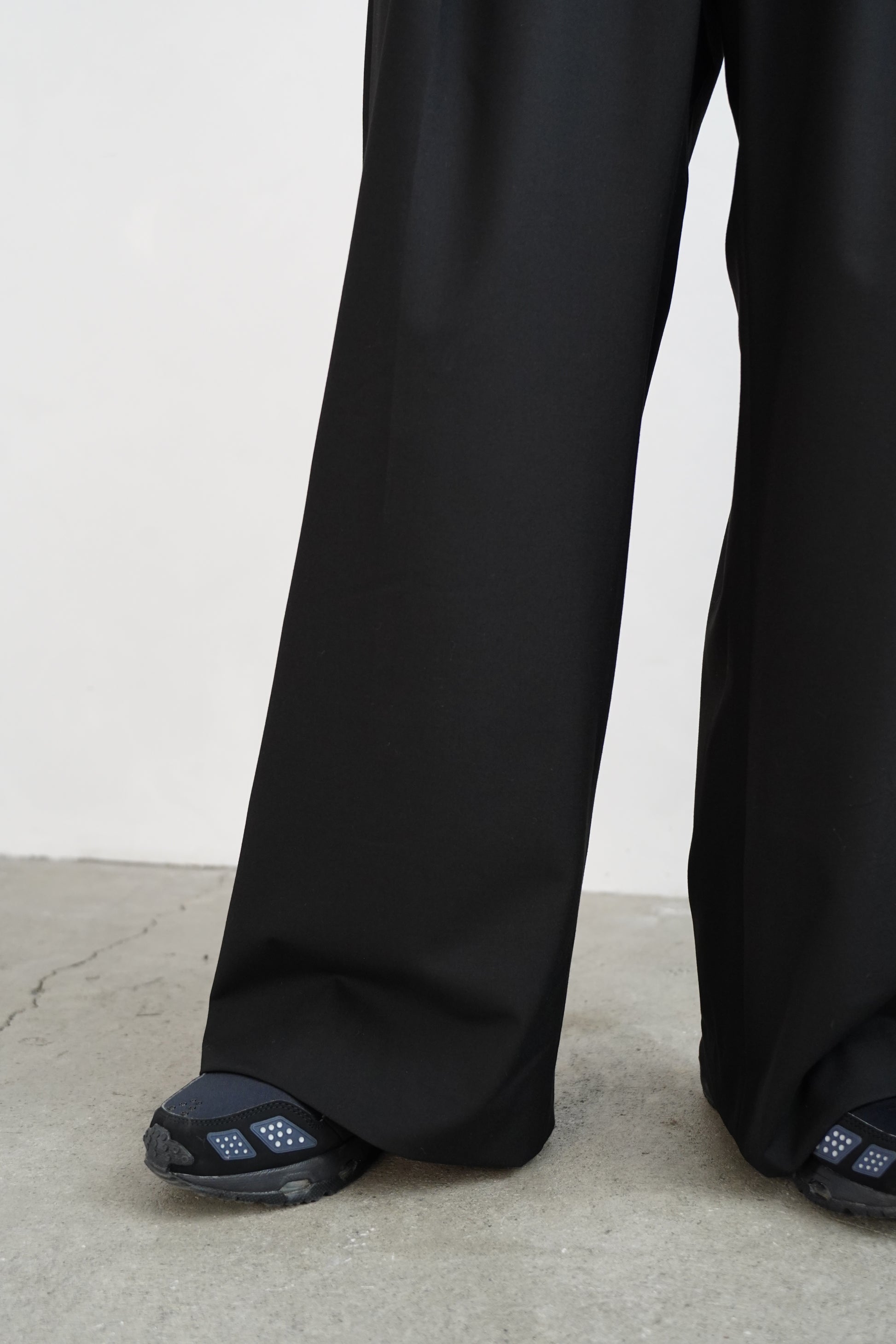 防しわ加工が施されたスーティング素材を用いて、形の綺麗なパンツをつくりました。